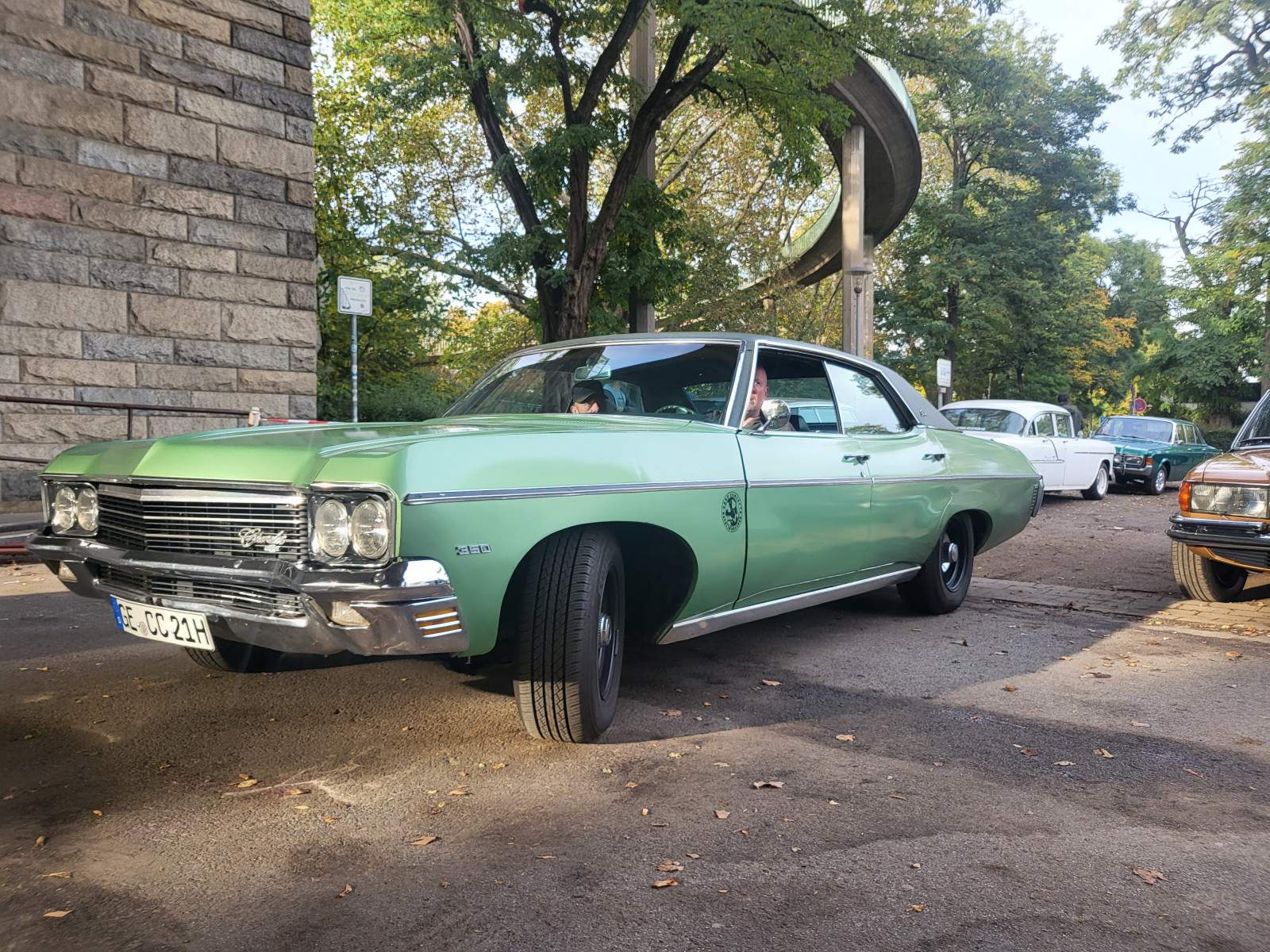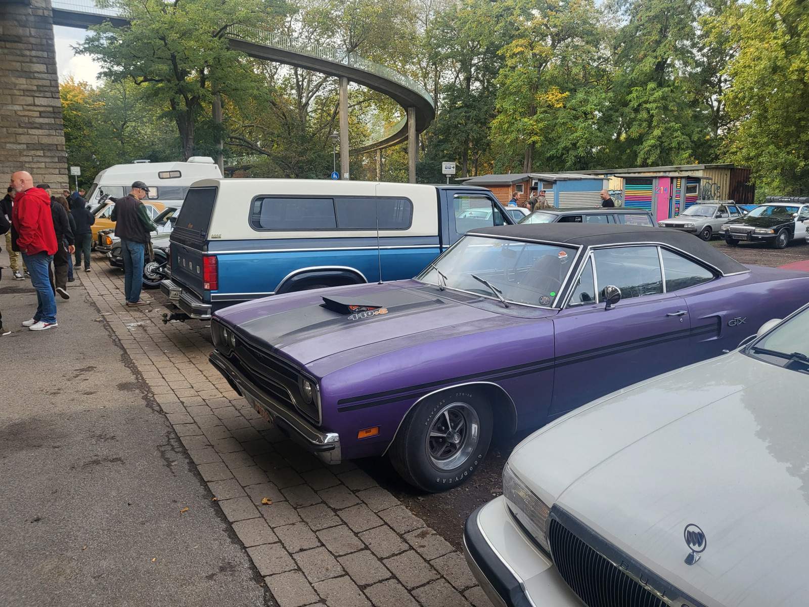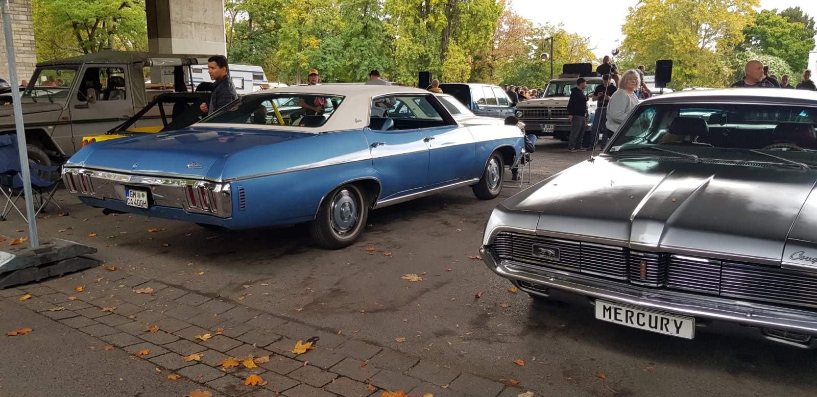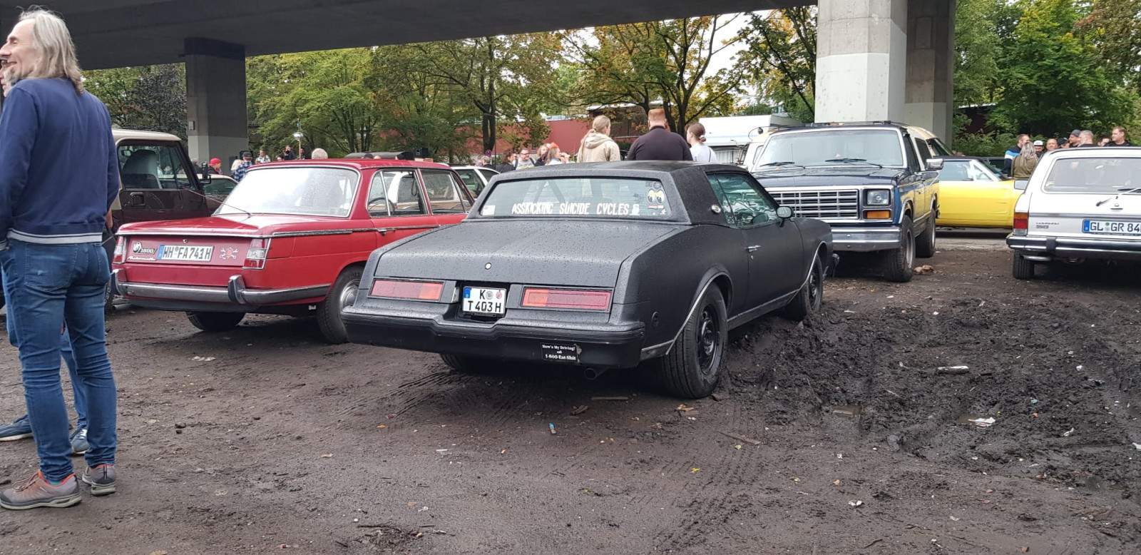 Eine gute Stunde später ging es dann auch schon wieder los zum eigentlichen Treffen. Hierfür hatten wir uns mit v8.lover verabredet der in seinem schicken Roadmaster um die Ecke kam. Als wir ankamen, war trotz des Wetters gut was los. Der Parkplatz war schon relativ voll und es waren fast nur noch Schlammlöcher als Parkplätze verfügbar. Glücklicherweise haben wir noch einen akzeptablen Platz bekommen. Wir schlenderten dann gemeinsam über das Areal und schauten uns die ganzen Preziosen an. Ich persönlich war über den hohen US-Car Anteil erstaunt! Es waren doch einige davon auf dem Treffen vertreten