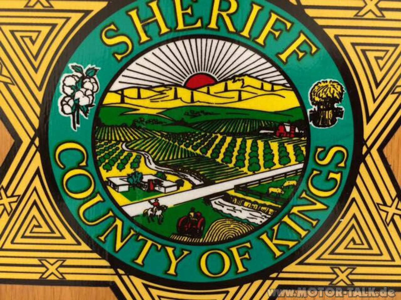 Auch bezüglich der Citizens on Patrol Schriftzüge konnte uns unser Mann in Hanford helfen. Die Schrift hatte wohl tatsächlich die gleiche Farbe wie die des Sheriff Schriftzug, gold reflektierend. Was man auf besagtem Bild auch sehr gut erkennt ist das der Schriftzug ein Teil ist und nicht wie wir vorher annahmen aus einzeln geklebten Buchstaben besteht. Wir sind gespannt was unser Grafiker aus den neuen Vorlagen zaubert
