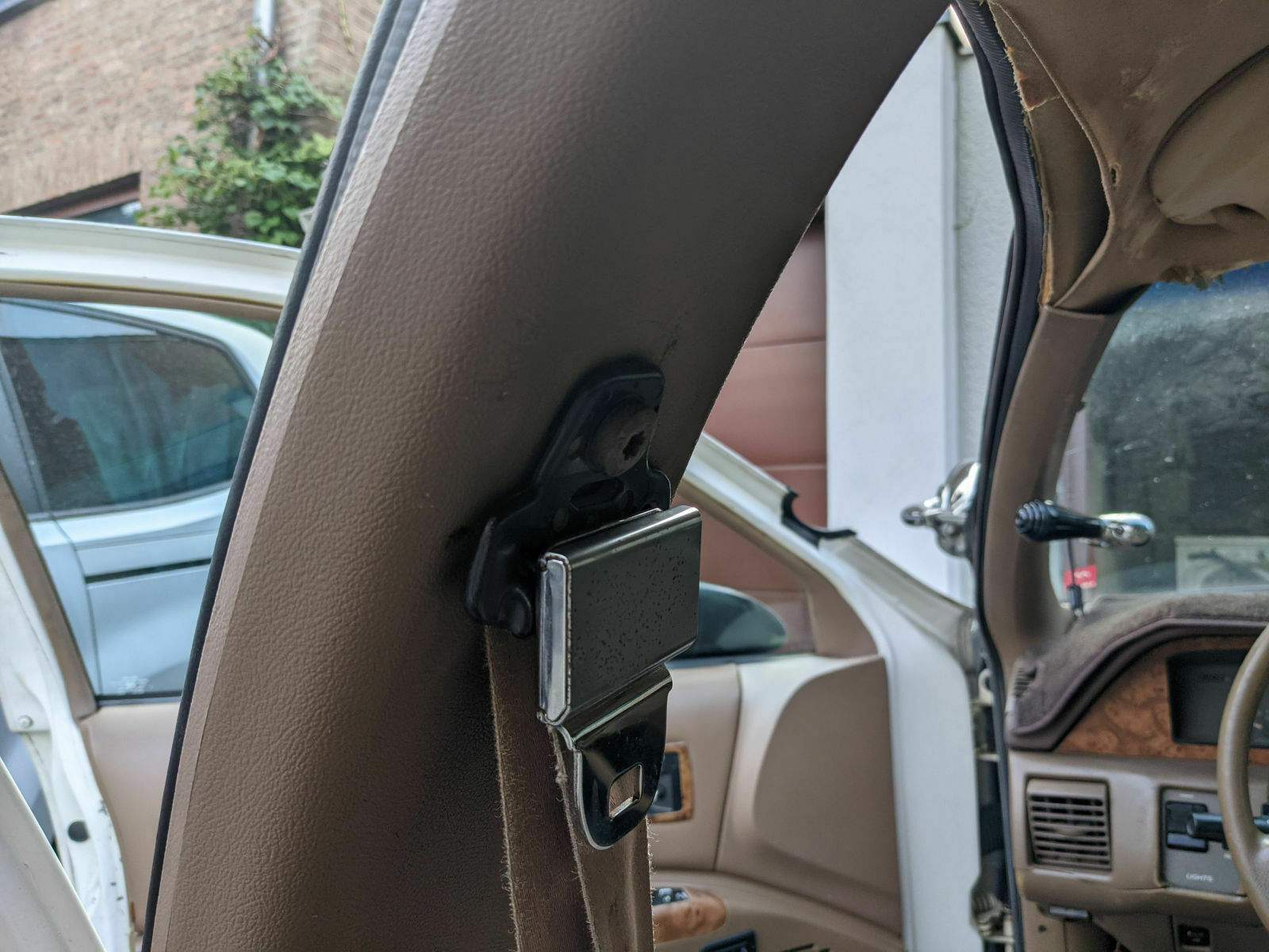Hier muss man zuerst einmal die Abdeckung der Verschraubung der Gurte lösen, da der Sheriff die nicht (mehr) hat entfällt der Punkt. Danach löst man die fette Schraube von der Gurthalterung, die sitzen für gewöhnlich mit ordentlich Schmackes drin. Sorgt also für ordentliches Werkzeug wenn ihr das auch machen wollt. Hier habe ich einen 8er Vielzahn benutzt der gut passte. Danach hebt man die Verkleidung an den beiden Clipsen vorsichtig ab die an der Unterseite der Verkleidung sitzen. Danach ist auch das erledigt.