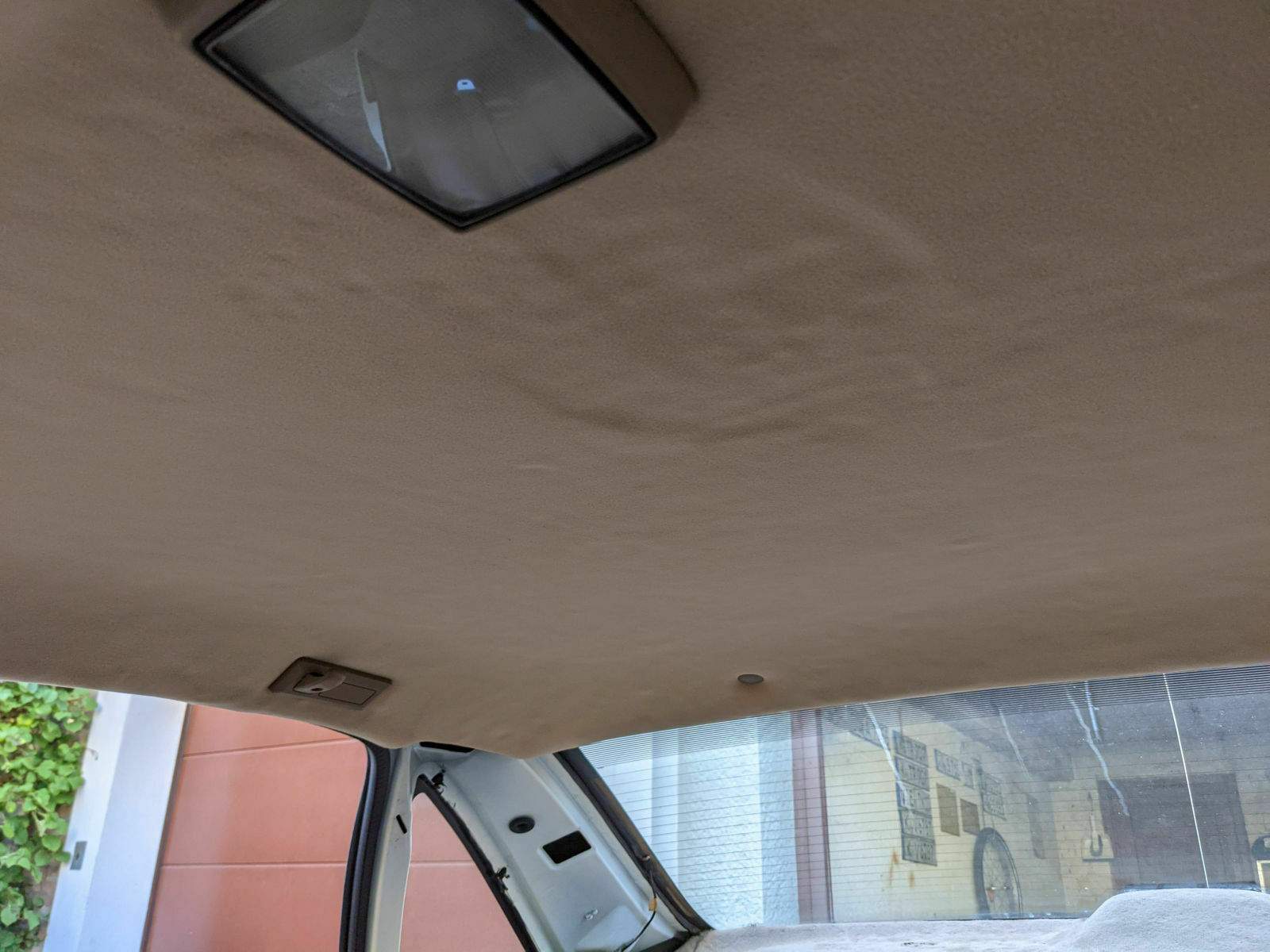 Kommen wir zum Grande Finale, dem Dachhimmel! Da ich, Gott sei Dank, keinen Wagon habe fallen hier einige Arbeitsschritte weg. Im Falle der Limousine muss man jetzt die Vordersitze einmal umlegen, oder gleich ausbauen wenn man mehr Platz haben möchte. Den Himmel kann man jetzt abziehen, indem man den Himmel an den entsprechenden Halteklammern abzieht. Insgesamt gibt es davon beim Sedan 7 Stück, zwei davon sitzen Richtung Windschutzscheibe, zwei auf Höhe der Fahrertür und die letzten drei halten den Himmel an der Heckscheibe. Jetzt kommt der etwas fummelige Part der beim Wagon tatsächlich besser funktioniert, nämlich der Part an dem der Dachhimmel einmal raus muss. Beim Kombi kann man das Ganze einfach durch die Heckklappe ziehen, dies funktioniert bei einer Limousine natürlich nicht. Also muss der ganze Spaß durch die Beifahrertür raus weil die hinteren Türen dafür zu klein sind.