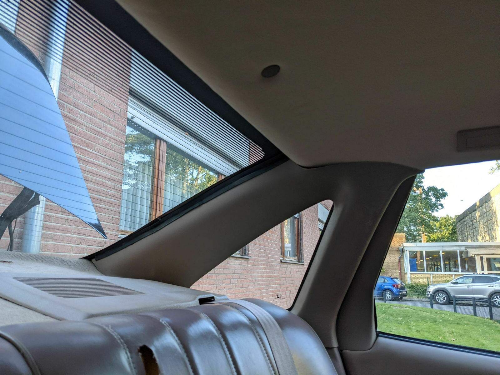 Danach war es an der Zeit das Ganze zu bewundern. Hach, schön wenn der Dachhimmel einem nicht mehr auf dem Kopf hängt. Gleich ein ganz anderes Raumgefühl und nicht mehr so erdrückend wie vorher. Dazu wirkt der Wagen gleich deutlich weniger ranzig im Innenraum. Und die Haptik des Stoffes ist wirklich sehr nahe am Original. Die Farbe ist ein Ticken heller als vorher, fällt aber dank dem restlichen Beige im Innenraum nicht auf und fügt sich ansonsten sehr gut ein. Wie ein Als ich den Himmel ausgebaut habe hatte der Himmel einen stärkeren dunkelbraun/olivgrün Einschlag. Wie ein Fremdkörper wirkt die Farbe definitiv nicht!