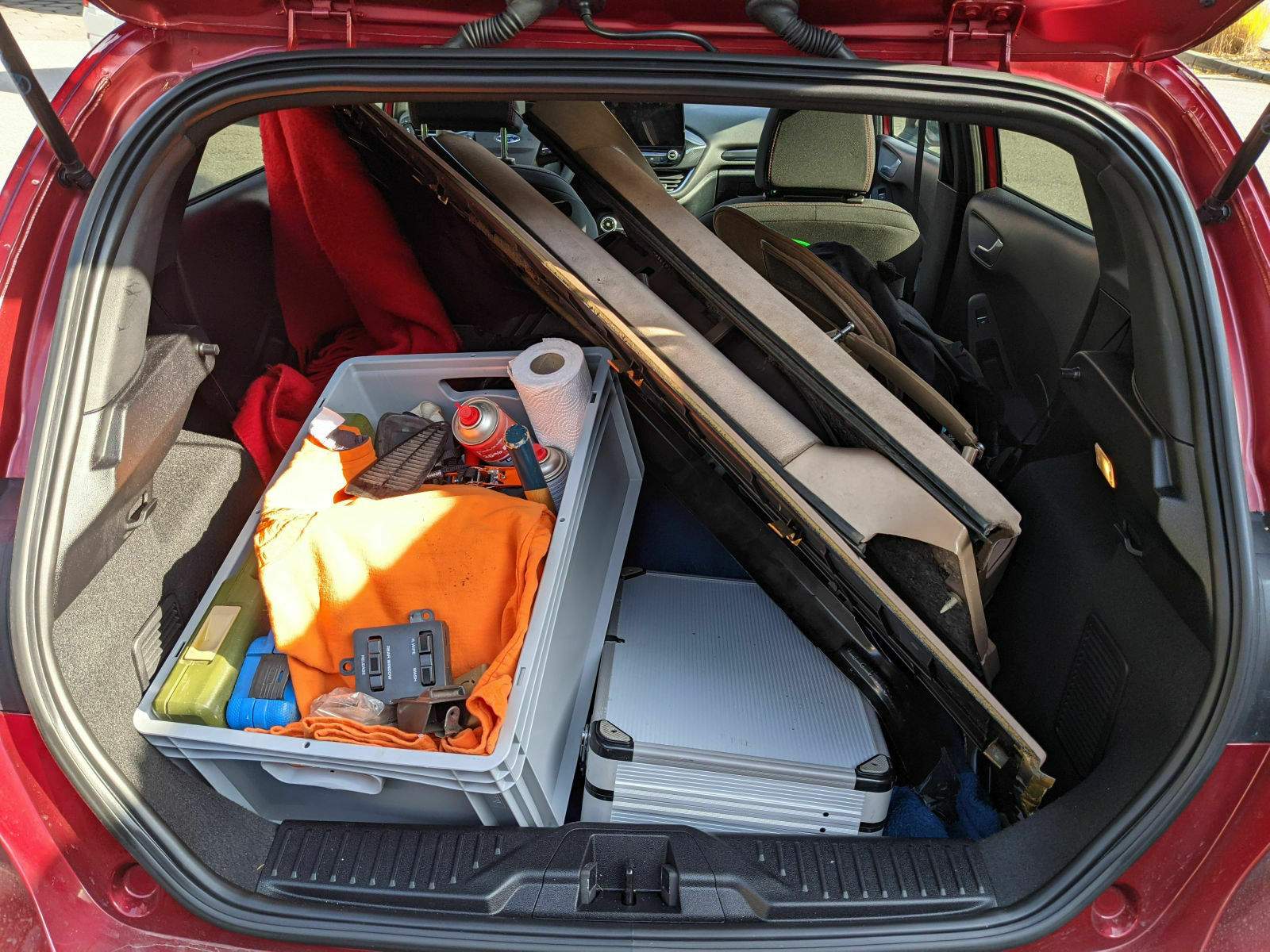 Dafür kann ich das Zeug auch drei mal persönlich mit dem Auto abholen. Ich war nur froh das wir den Kram in den Fiesta bekommen haben. Das Dash hat gerade so mit etwas puzzeln gepasst.