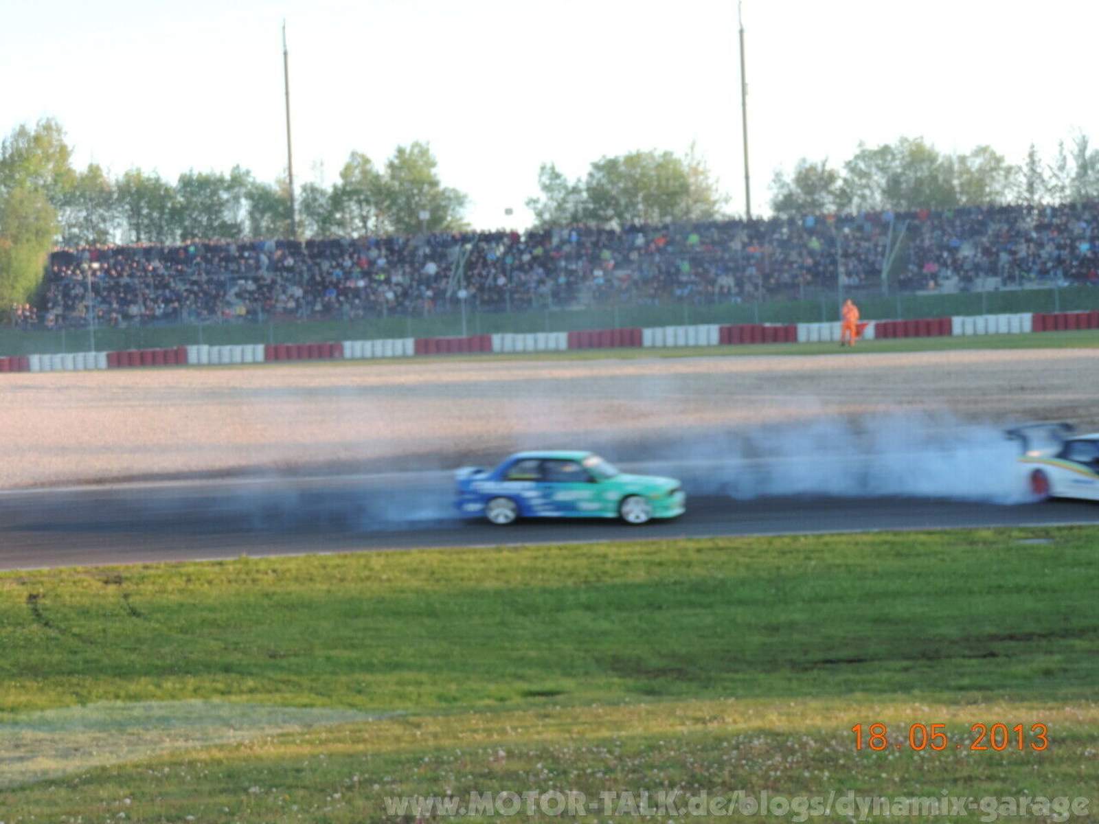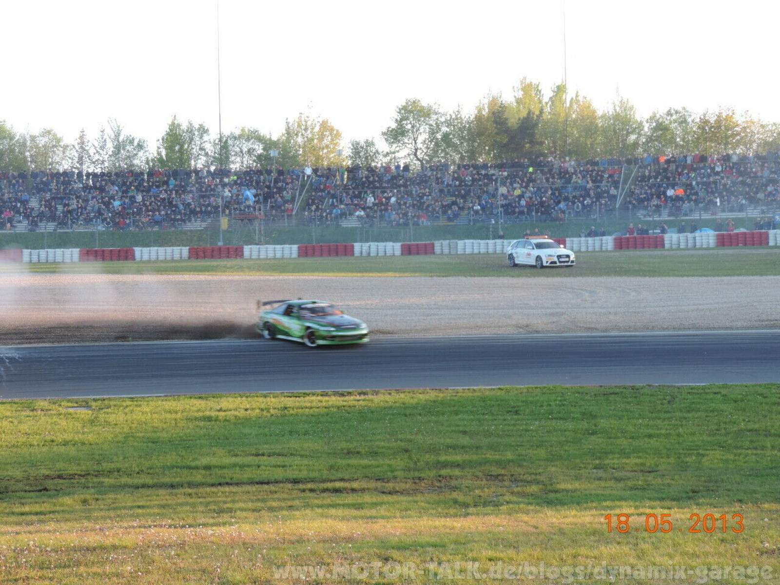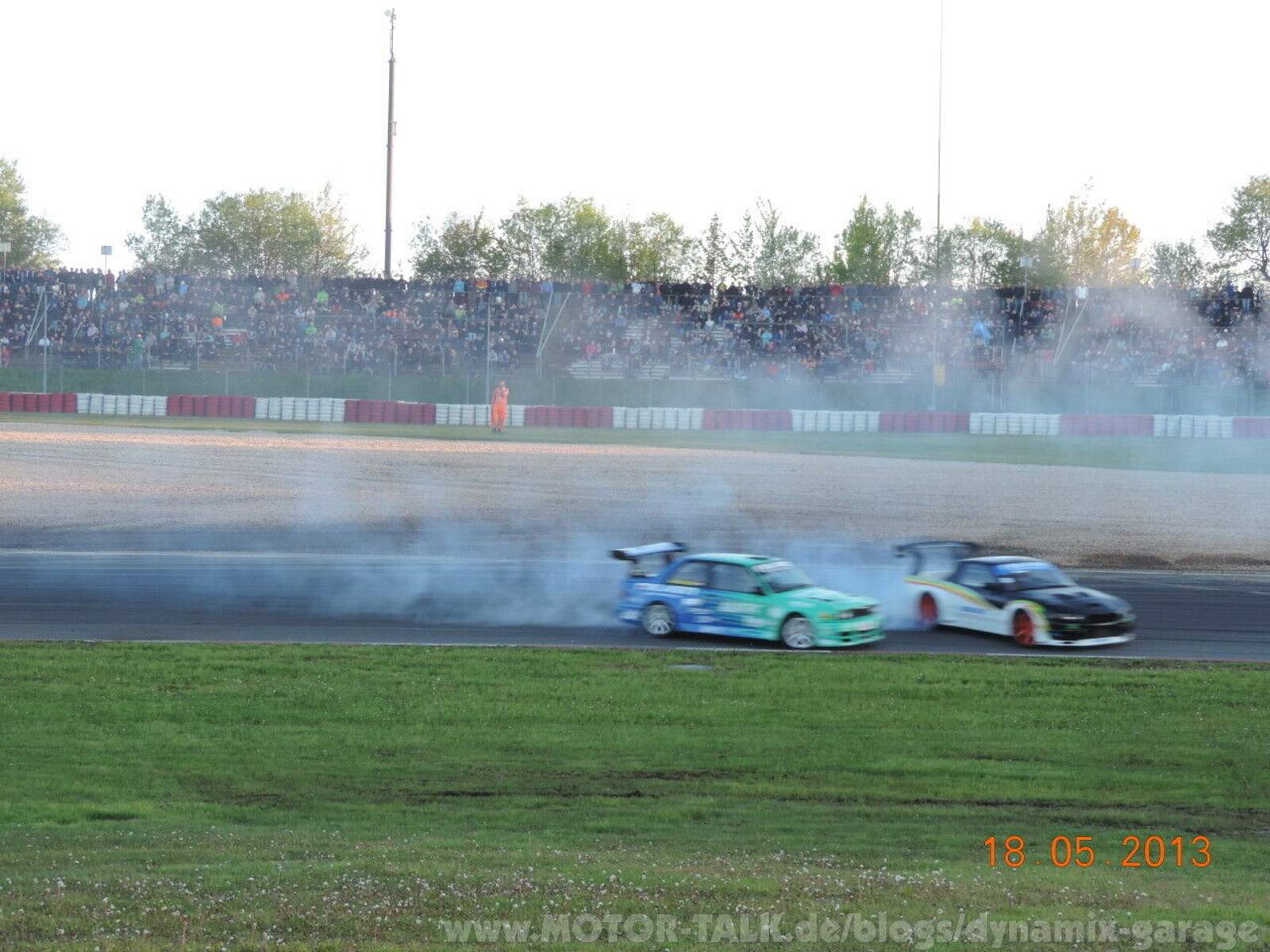 Nach einer schnellen Druckbetankung mit Tierfleisch (Marke Rind) ging die Drift Challenge auch schon los. Zuersteinmal wurde eine kleine Aufwärmrunde gefahren bevor es richtig losging.