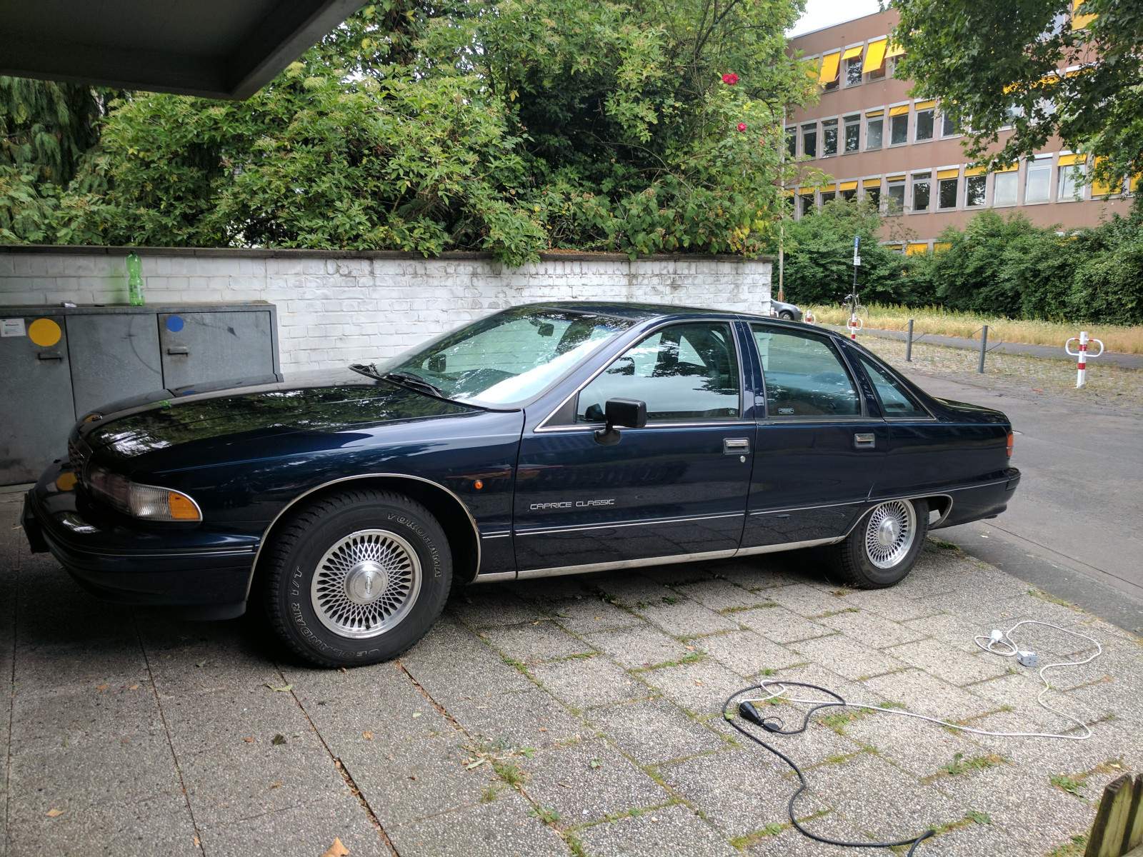Wie treue Leser bereits wissen, lief mein Caprice als einer der seltenen Exportversionen für den deutschen Markt vom Band. Gespickt mit all den schönen Dingen die "echte" US-Car Fans sofort abgeschraubt hätten und es bei den anderen Autos auch zur Genüge getan haben. Heißt, die ganze seltene Beleuchtung in Form der T84 Frontscheinwerfer und der T90 Rückleuchten mit gelben Blinkern, sowie der T79 Nebelschlussleuchten oder die ungeliebten Exportspiegel oder die Stoßstangen oder oder oder. Ich hatte das unfassbare Glück, dass mein Auto bei Kauf, relativ, unverbastelt war. Bis auf das originale Haubenemblem und das originale Radio fehlte nix Elementares. Scheinwerfer noch original, Stoßstangen noch dran, Spiegel auch noch und auch sonst war an dem Wagen noch keiner der üblichen Hobbybastler dran deren erste Amtshandlung es gewesen wäre den Hobel erstmal Mad Max mäßig aufzumotzen weil "fette Karre" und so. Glück gehabt! Ansonsten waren die Exportautos, wie bei GM üblich, in der Basis immer besser ausgestattet als die US-Versionen. Nackte Muddi gab es da nicht wirklich. So hat meiner vieles von dem was damals gut und teuer war und sogar Dinge die es bei den US-Versionen so gar nicht gab. Neben den üblichen Komfortextras wie Klima, Kassettenradio Tempomat sowie einmal alles elektrisch (Fenster, Sitze, Antenne usw) gab es noch einige aufpreispflichtige Schmankerl wie das Ride & Handling Fahrwerk, die breiteren 225er Reifen sowie das Sperrdifferenzial für Europa obendrauf. Ebenso bemerkenswert ist das man dem Caprice für Deutschland die große Bremse an der Hinterachse spendierte. Die bekam man bei der Limousine eigentlich nur wenn man ein Police Package bestellt hat. Eine weitere Besonderheit ist die Niveauregulierung! Was ist daran so besonders? Nun, die gab es für die Limousine in den USA nicht gegen Geld oder gute Worte