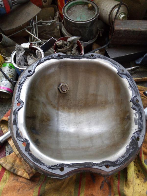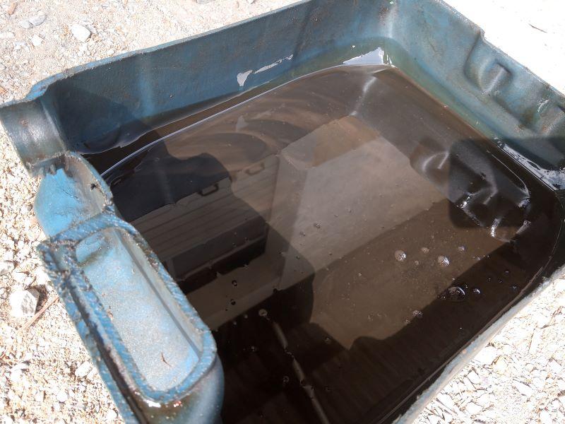 Um das Öl zu tauschen muss der Deckel ab, die Achse vom Buick hat keinen separaten Ölablauf. Zu meiner Freude ließen sich alle 10 Befestigungsschrauben ohne Gegenwehr lösen. Das alte Öl stank wirklich extrem, ich meine Getriebeöl an sich duftet schon nicht nach Rosen aber das was aus dem Differential herauskam strapazierte schon den Würgereiz. Ok, genug gejammert. Wirklich frisch sah das Öl definitiv nicht mehr aus und bestätigt meine Vermutung das es schon etliche Meilen hinter sich hatte.