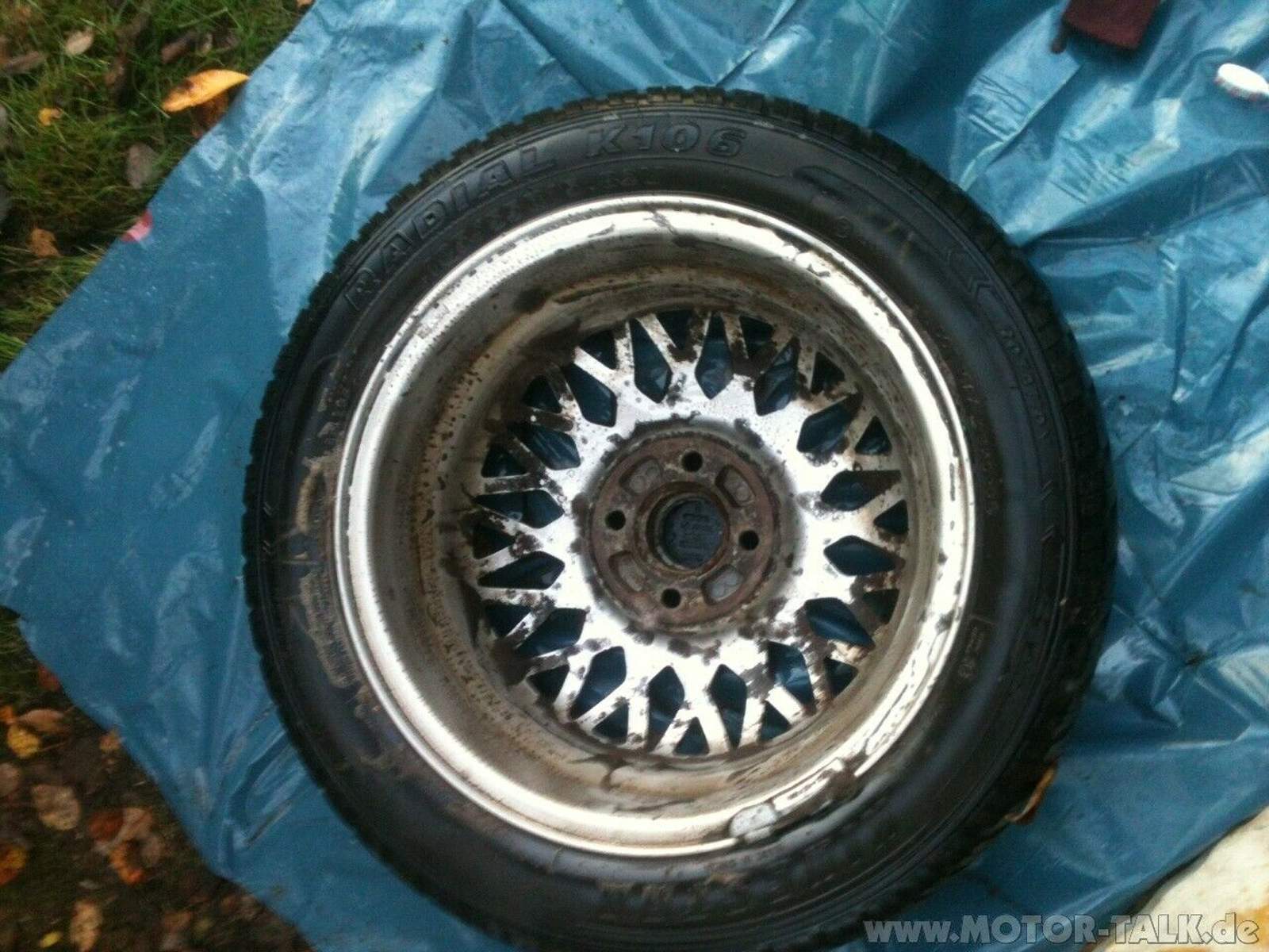 Ja genau schon wieder. Wie von euch in einem der ersten Artikel bereits festgestellt sind die aktuellen Felgen nicht so der Knüller. Es ist zwar nicht euer Auto, aber ich bin eurer Meinung. Vor kurzem dann beim durchblättern der aktuellen Ebay Angebote durch Zufall auf einen Satz gestoßen, und habe einfach mal einen lachhaften preis geboten. Klar muss man da Abstriche machen. Felgen total versifft und mit Bordsteinschäden. Über die Reifen steht nichts in der Auktion.