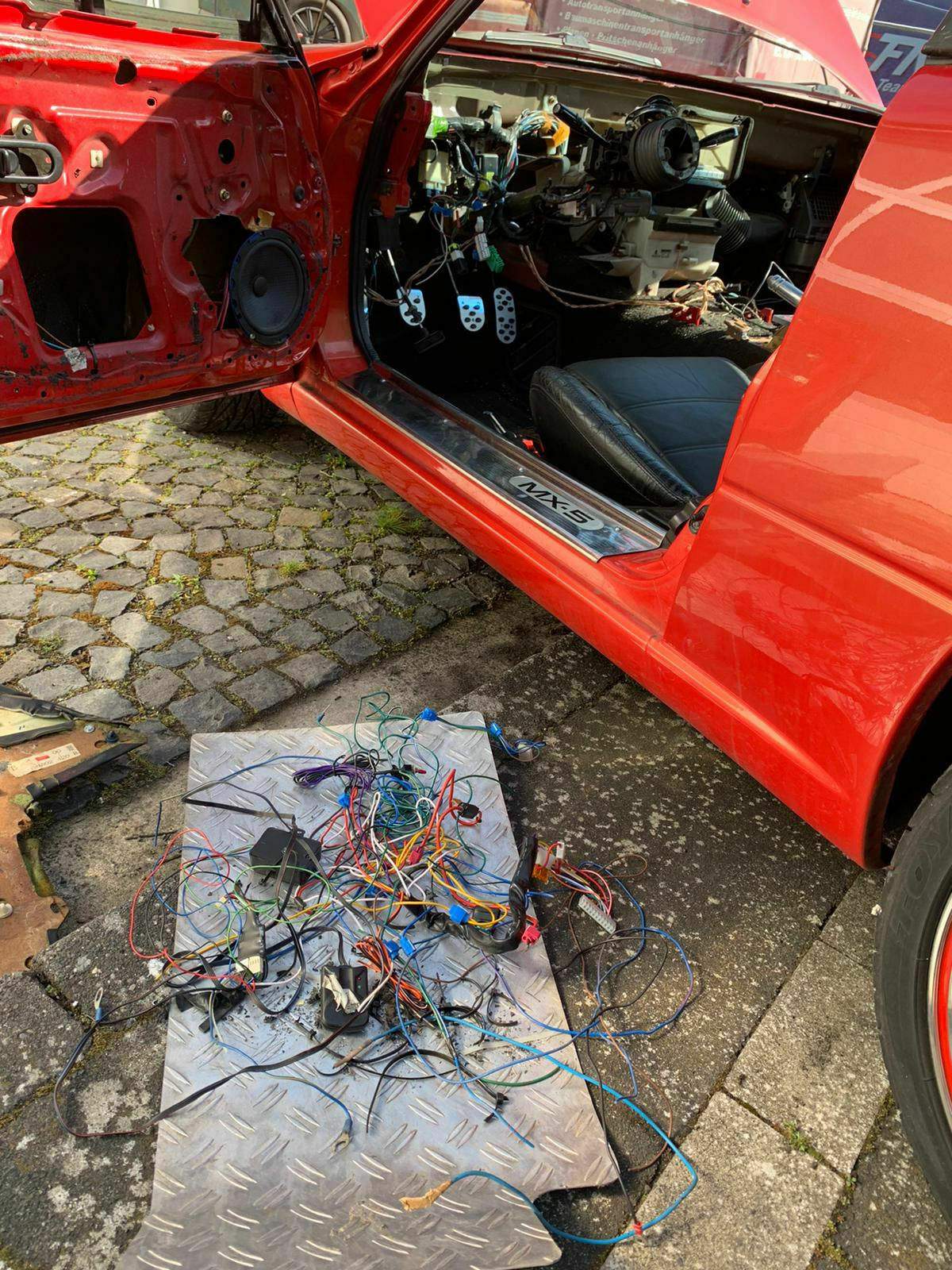 Das Auto wurde erstmal innen zerlegt , unnötige Kabel usw. erstmal Alles raus |