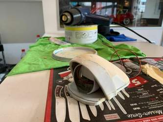 Dann hat mir weiterhin die ganze Anordnung in der Mittelkonsole oberhalb nicht gefallen , die neue Multimedia Einheit sollte in Sichthöhe sein und nicht unten im Keller . Also wie immer , erstmal Alles klein gemacht , nun waren aber die Lüftungsdüsen im Weg , die alten Ausgänge wurden verschlossen und Neue gelegt, die jetzt oben im Amarturenbrett rauskommen .