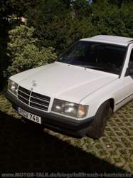 Hiermit eröffne ich nun den Blog, indem ich mein 190e 2,0 Bj.87 118PS Automatik Weiß mit original Blauer Innenausstattung und einem leider schon zu spät geschossenen Foto hier vorstelle. |