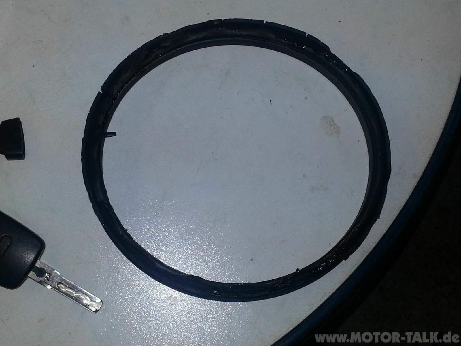 Nun gut. Ich hatte mein Auto wieder und mir war es erst mal egal, dass die Nadel nicht unter halb fallen durfte. Allerdings Volltanken war auch nicht... dann lief es oben wieder raus... Aber iss ja eh nur als Starthilfe für die Gas-Anlage. Letztens HU im Oktober mit dem Prüfer unterm Wagen... " ja... hier hinten riecht es aber leicht nach Benzin... iss aber nichts zu sehen" Ok... kümmer ich mich mal drum. Gestern... mitlerweile März war es dann mal an der Zeit. Könnt ja sein, dass der Sommerurlaub irgendwann kommt und die 100 Liter Gasbombe war günstiger Weise gerade leer. Also raus das Ding... Oha... Als erstes der große Dichtring... ich bin der Meinung, er sah 2012 schlimmer aus. Doch wenn er wirklich gewechselt wurde, warum lösst sich diese dann auch schon wieder auf??? E10 ? Nicht bei mir ! Doch nachdem ich die komplette Komponente raus hatte war ich echt schockiert ! Musste aber auch grinsen als ich den kleinen Nullring sah...