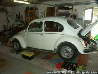 Hallo an alle Sooo...... mein Käfer Projekt geht langsam dem Ende zu... In den letzten Tage noch ein paar Kleinigkeiten angebaut wie z.B. Stoßstangen, Auspuff mit neuen Dichtungen angeschraubt, Innenraum komplettiert (Radio, Tepiche, Sitze etc eingebaut). Das hört sich jetzt nicht gerade viel an aber diese Arbeiten halten unheimlich auf und nehmen doch sehr viel Zeit in Anspruch. Da ich alle Bremsleitungen erneurt habe sowie auch den Hauptbremszyliner steht mir immer noch das Entlüften der Bremse bevor. Desweiteren noch ein Ölwechsel, Ventile einstellen, Kerzen wechsel, ....... und dann gehts endlich zum TÜV! im Anhang ein paar Bilderchen vom fast fertigen Käferlein....