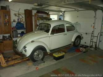So... da ist das Schmuckstück!... Der 69er Käfer stammt aus Österreich. Entdeckt habe ich ihn bei Mobile.de. Da ich recht nah an der Östereichischen Grenze wohne habe ich mir das Auto angeschaut und auch direct gekauft. Habe den Käfer dann mit dem Hänger nach Hause geschleppt. Auf dem Bild sieht man meinen Käfer direkt nach der Ankunft in meiner Garage. Als ich den ersten Check gemacht habe musste ich mich danach erst einmal hinsetzen und überlegen ob ich den Käfer wieder zurückbringe...Aber dazu demnächst mehr....