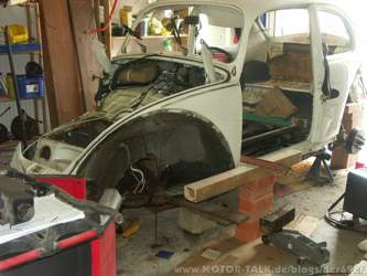 Hallo an alle Nachdem ich meinen genazen Urlaub geopfert habe ist nun mein Käfer in dem Zustand wo es langsam wieder Spass macht zu arbeiten bzw wo man auch wieder Fortschritte sieht. Das anpassen des neuen Warmluftkanals bereitete mir eigentlich keine Probleme. Spaltmasse etc alles vom feinsten. Selbst das einpassen des rechten Innenkotflügel ging einigermassen leicht von der Hand. Ich hatte da schon meine Bedenken weil ich immer gehört hatte das die Passmaße von den Blechteilen nicht sonderlich überzeugen. Es ging alles recht leicht von der Hand. Das Rahmengestell was ich innen eingeschweisst hatt wieder rauszubekommen war dagegen schon eine gehörige Prozedur. Desweiteren den Aufbau wieder auf die Bodenpatte zu setzten so das die Schrauben passen war auch nur mit sehr viel fluchen möglich. Ich denke das es daran lag das ich alles alleine gemacht habe also ohne einen zweiten oder dritten mann. Mit zwei Mann den Aufbau draufzuschrauben geht sicherlich leichter von der Hand. Folgende Arbeiten müssen jetzt noch erledigt werden bevor es zum TÜV geht: Bremse entlüften und einstellen Innenraum wieder einrichten... Teppiche Sitze etc... Ölwechsel, Kerzen wechsel, Ventile Einstellen, Vergaser und Zündung neu einstellen. Hupe funktioniert noch nicht!. Fehler habe ich bis jetzt noch nicht gefunden. Muss wohl mal das Lenkrad abnehmen und den Schleifkontakt überprüfen. Dieses sind jetzt arbeiten die sich doch ein bisserl in der Länge ziehen weil ich nun kein Urlaub mehr habe und meine Familie auch noch was von mir haben möchte :-))... Mein Restaurierungsbuget ist nun auch komplett aufgebaraucht :-(( Fazit bis jetzt: Es hat sicherlich viel Spass gemacht aber ich empfehle jeden der beim Käfer ein Warmluftkanal alleine neu einsetzten möchte sich das gut zu überlegen. Es kommen teilweise Probleme auf einen zu da hätte man im Traum nicht dran gedacht. Wie gesagt mit zwei oder drei Mann ist es kein Problem. Ach ja und wenn Warmlüftkanal erneuern sollte man sich die Innenkotflügel auch anschauen denn besser kommt man nicht dran wenn die Kanäle ab sind! Ok das von hier aus erst einmal... Weitere Bilder vom Fortschritt des Käfers werden folgen. Des weiteren folgt ein Artikel über meine Erfahrungen mit dem selbst lackieren. Viele Grüße aus Oberbayern sendet euch Mario |
