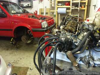 Hallo an alle Heute beschäftige ich mich mit einer Zylinderkopfdichtung beim Opel Vectra A. Der Motor hat die Nr C18NZ und hat 280000 km auf den Buckel! Das die Kopfdichtung defekt ist merkte ich am sehr starken Kühlwasserverlust, sehr unrunder Motorlauf, keine zufriedenstellende Motorleistung, sowie Wasser im Motoröl. Somit war es höchste Zeit für diese Arbeit. Zuerst mal das Masseband von der Batterie abgeschraubt, danach Luftfilter und alle Schläuche und Kabel die zum Zylinderkopf führen abziehen. Desweiteren natürlich das Kühlwasser ablassen. Nun wirds etwas knifflig. Der Vectra A mit der 1,8 Liter Maaschine hat einen Keilrippenriemen. Dieser Riemen treibt die Lichtmaschine und die Servopumpe mit an. Und dieser Riemen muss ab!. Eien weitere Besonderheit ist das ich die Riemenscheibe von dem besagten Riemen abbauen muss um die Zahnriemenabdeckund abzubekommen und noch wichtiger um die OT Markierung an der Kurbelwellenrad zu sehen. Denn auf dem Kurbelwellenrad ist die Riemenscheibe mit 4 Schrauben angeschraubt. Also Keilrippenriemen, Riemscheibe und Zahnradabdeckung abschrauben!. Nun den 1 Zylinder ( befindet sich immer gegenüber der Kraftabgebenen Seite) auf OT stellen!. Dieses genau wie möglich machen. Nun Zahnriemen entspannen und oben abnehmen. Wenn man sich traut kan man versuchen den Zahnriemen ohne entspannen abzunehmen was ich aber nicht empfehle!!. Dazu gehört schon eine Menge Übung und Erfahrung denn man muss den Zahnriemen auch wieder draufmachen. Vorteil ist man braucht sich nicht mit den sehr schlecht zugänglichen Schrauben von der Wasserpumpe rumärgern. Nachteile ist man riskiert ein Motorschaden! Nun noch das Nockenwellengehäuse abschrauben und das Nockenwellenrad abnehmen. Als letztes noch das Abgasrohr vom Krümmer abschrauben und schon kann es losgehen die Zylinderkopfschrauben zu lösen. Motor muss natürlich kalt sein. Danach Kopf abnehmen Dichtflächen reinigen evtl Kopf und Motorblock auf Planheit prüfen und alles wieder zusammenbauen. Zeit ohne Pausen in einer Wald und Wiesengarage :-) ca 1 Tag. Ich habe drei Tage gebraucht aber mit Mittagschlaf und viele viele Pausen. Diese Arbeit erfordert natürlich KFZ Technische Vorkenntnisse und sollte von einen KFZ Laien nicht ausgeführt werden. Nur wenn man es kann spart man eine Menge Geld. Denn ich verbinde die Marke Opel immer mit Kühlwasserverlust Problemen!. Dieser Artikel ist nur ein kurzer Auszug aus den Arbeiten die dazugehören wenn man eine Zylinderkopfdichtung zu Hause in der Garage erneuert. OK in diesem Sinne danke für das lesen dieses Artikels... Viele Grüße aus Oberbayern sendet euch Mario |