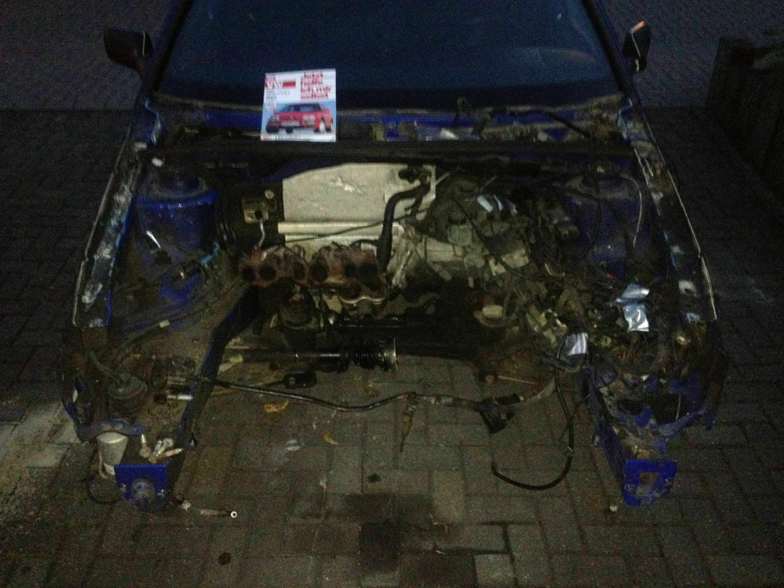 Der blaue Spender hat sich nun endgültig verabschiedet und ist einem neuen Fahrzeug gewichen. Habe ihn sehr günstig bekommen und er war nahezu rostfrei, bis auf die Stelle am Tank. Habe ich selbstverständlich alles wieder schön gemacht. Nachdem der kleine 1.3er NZ nach 3 gelösten Schrauben schon quasi von alleine raus gefallen ist, die Achsen, Leitungen und Tank ausgebaut waren, ging es direkt an den Einbau der VR6 Teilchen.