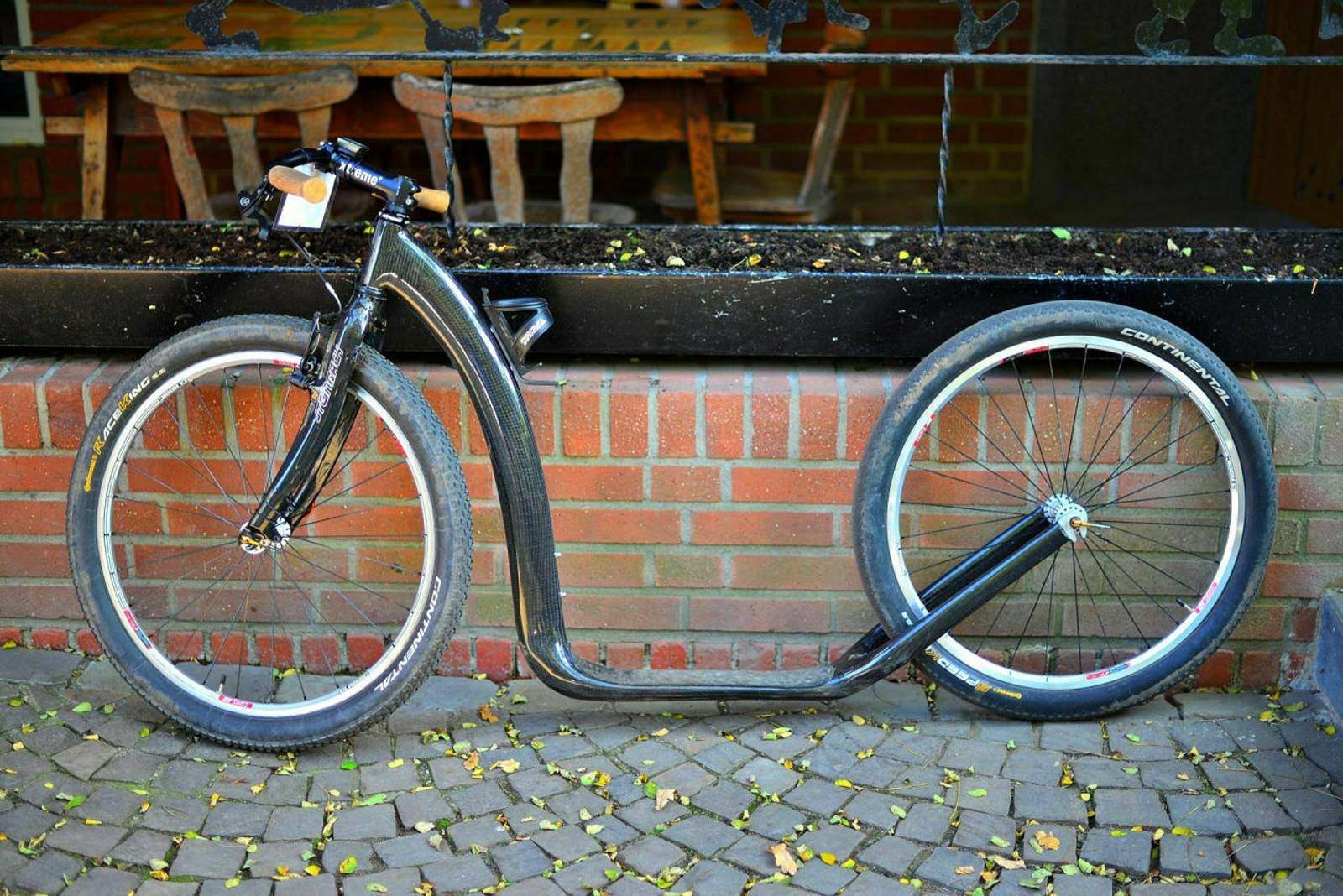 Man sagte mir, dass der Roller mit Hund deutlich sicherer wäre als das Rad, weil man bei Schrägziehen des Hundes notfalls schneller mit dem Fuß zum Boden kommt und auch einen niedrigeren Schwerpunkt hat. Aber die meisten "Gassi-Fahrer" nehmen die Leine in die Hand, denke ich. Dann ist das wohl nicht so zu merken. Beim Rad ist das mit der "Antenne" vorne etwas schwieriger, soweit ich informiert bin. Selbst habe ich das aber noch nie probiert.