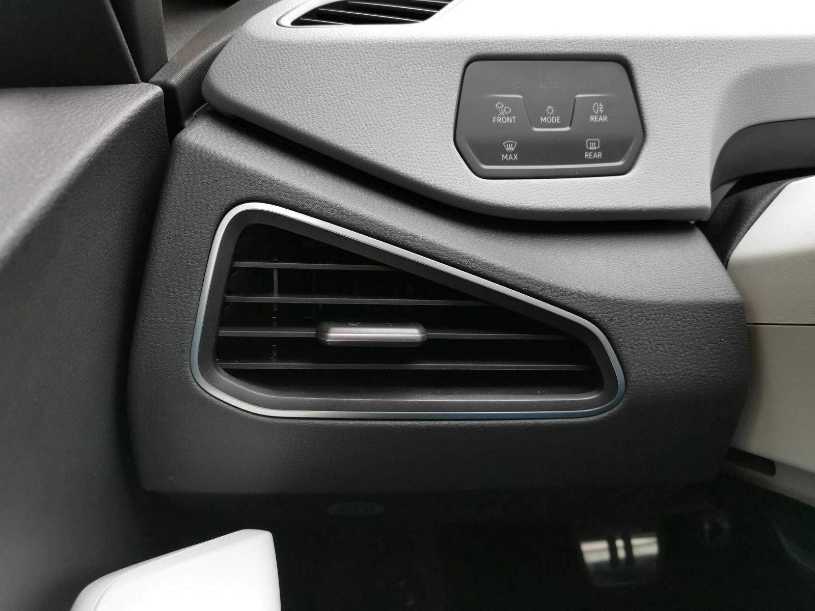 - Der Innenraum gefällt mir mittlerweile richtig gut. Ich würde ihn gar nicht mehr anders gestaltet haben wollen. Es gibt sehr viele Ablagen, alles sehr praktisch, auch ein kleines Netz ganz vorne unten. Mit dem weißen Lenkrad wirkt es m.E. auch recht edel. Anders als manch andere habe ich Chrom-Ränder um die Belüftungsdüsen.