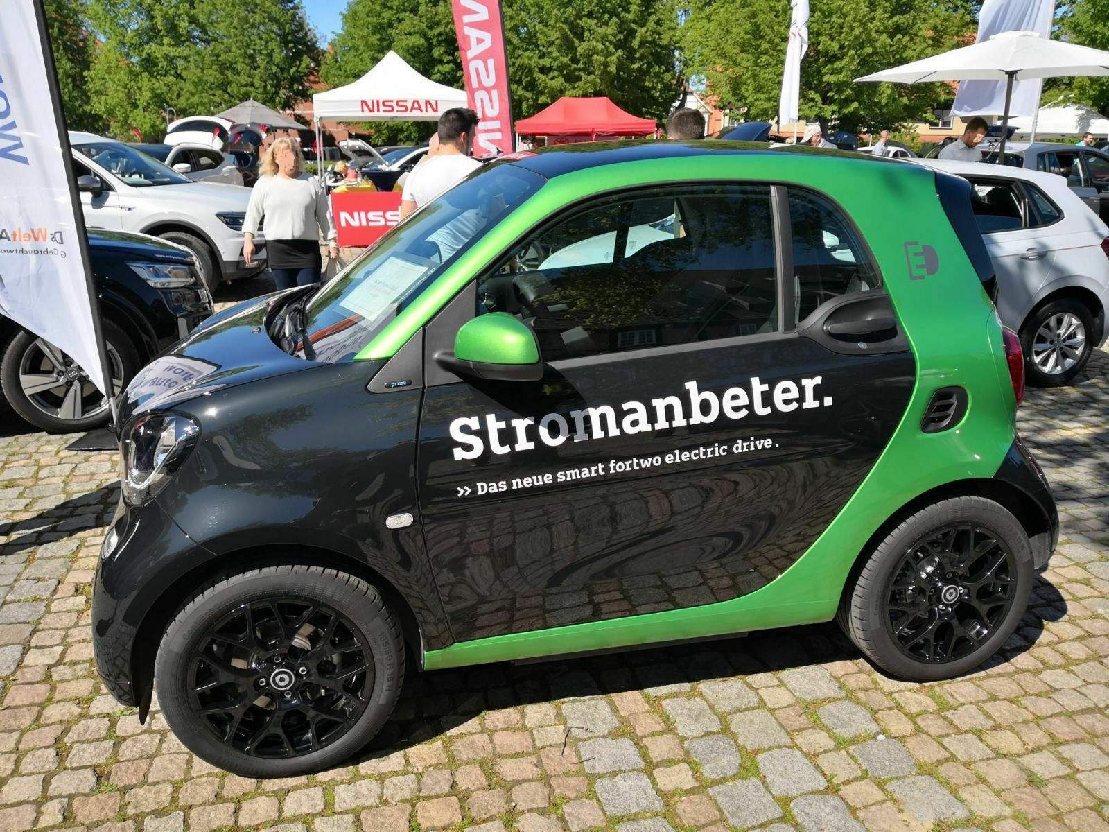 Schön publikumsnah und viel beachtet, aber leider ohne direkte Probefahrmöglichkeit, wären Ausstellungen Shoppingcentern. Naja, man könnte dabei zumindest auf einen Verkehrsübungsplatz mit verfügbaren E-Autos hinweisen.