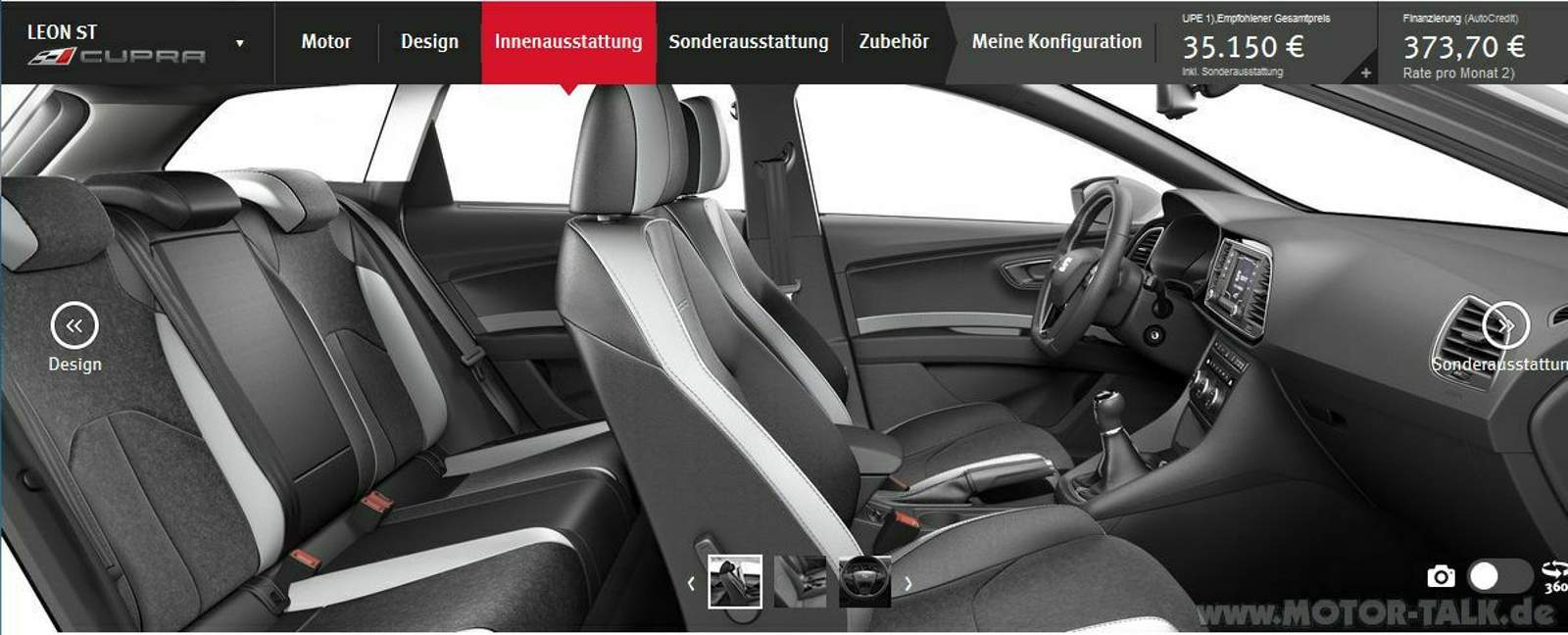 BTW: Erstmals gibt es Innenraum-Rundumbilder im Seat-Konfigurator