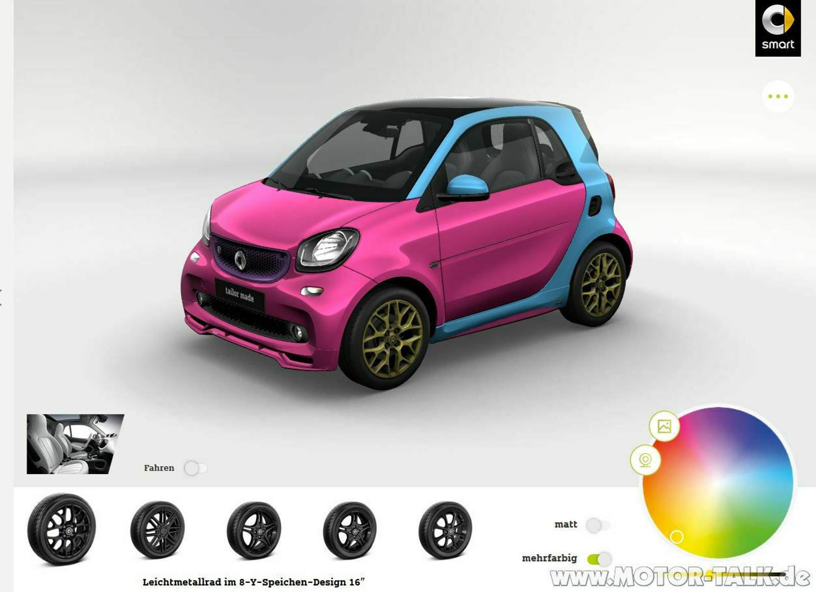 , zumal der Farbkonfigurator auch nur am PC mit Firefox (und Edge) funktioniert. Da könnte Smart gerne noch etwas an der Software optimieren.