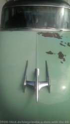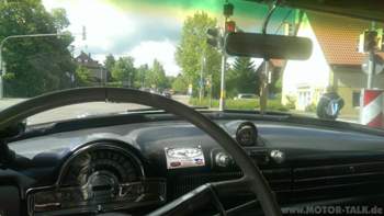 Bei meiner Recherche habe ich auch sehr viele Dinge über MEINEN Olds herausgefunden. Der Erstbesitzer hat sich seinen Wagen damals ziemlich gut ausstatten lassen: Der Olds hat das Deluxe Radio mit zuschaltbarem Fondlautsprecher bekommen, die Uhr im Armaturenbrett wurde durch ein zeitgenössisches Navi ersetzt, dort ist ein Kompass installiert und die Uhr ist dafür ins Lenkrad gewandert und zieht sich selbst durch die Lenkbewegung auf (allein das hat damals 35$ Aufpreis gekostet). Der Erstbesitzer stand wohl auch auf Technik und Innovation und hat sich das, damals noch ganz neue, Autronic Eye dazu bestellt (das ist quasi ein Fernlichtassistent). Außerdem gehören zur Sonderausstattung: große Radkappen die die ganze Felge abdecken, ein Ölfilter (!), ein Heavy Duty Luftfilter und Blinker. Der Wagen ist also, bis auf die Servolenkung, voll ausgestattet.