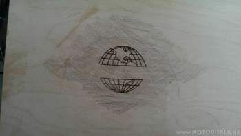 Dan Abdruck auf dem Holz musste ich dann nur noch mit einem Lötkolben nachzeichnen.