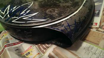 Leider waren ein paar Logos auf die Kiste gedruckt die ich erst mal von Hand abschleifen musste.