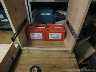 Guten Morgen an alle Interessierten, ich konnte doch noch Zeit für meinen Ausbau rausschinden. Zunächst waren die Schubladen dran, wobei ich feststellen musste, dass meine Fronten( die waren ja fertig; alte Buchenrahmen) leider nicht wirklich im Winkel sind. Da war Ausgleichen angesagt. Also zuerst die Auszüge ins Kastl, damit ich weiß, wohin ich komme, anschließend Schubläden selbst mit Lamello verleimt und verschraubt. Zum Schluß endlich die Fronten mit den Schubläden verbunden und ausgerichtet. Ich habe hier wieder mit Aluwinkel gearbeitet, damit ich auch die Schubladen zum Lagern zerlegen kann. Ganz gerade sind sie vorne leider nicht, damit werde ich halt leben müssen Mittlerweile habe ich 6 St. 12V Blöcke mit je14mAh aufgetrieben, das sollte reichen und ich bringe sie schön im rechten Fach unter( da wäre auch Platz für eine 65er Autobatterie). Nachdem ich noch Edelstahlstangen mit eingepressten Gewinde am Ende gefunden habe( bloß niemals den Keller aufräumen!!! Auf den Bildern habe ich diese Reling mal zur besseren Vorstellung provisorisch aufgelegt, wie sie später mit Ösenschrauben befestigt wird. Die nächsten Schritte werden die Spüle, die Elektrik und der Tisch sein. So, genug salbadert, seht Euch die Bilder an( sind ja jede Menge da) und wenn Ihr Fragen habt, ich antworte natürlich gerne auf Mails. Schöne Feiertage, und rutscht gut rüber, ich werde hier wohl erst Mitte bis Ende Januar zum Weiterbauen kommen, da meine Nachkommen erst Mal eine Familien-Skiwoche auf der Hütte fordern und da mache ich natürlich gerne mit... |