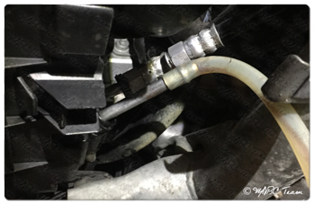 Man verfolgt nun die Metallleitung die auf der Beifahrerseite (Rücklauf) zum Getriebeölkühler führt.