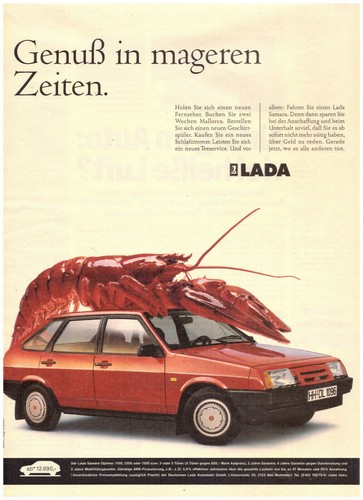 Du meinst, die gleiche Anzeige mit einem gelben Lada und einer Banane und man hätte wenigstens im Osten die Marktanteile halten können? Schade eigentlich, die Idee kommt ein paar Jahre zu spät.
