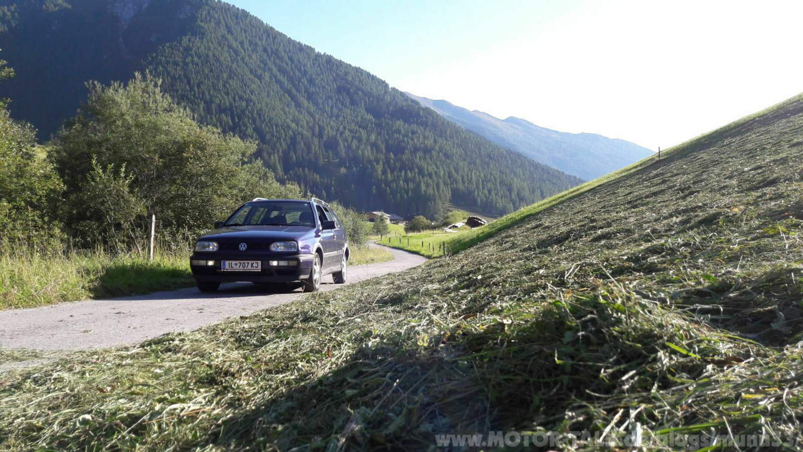 Anfang Juni ergatterte ich noch einen Satz originaler Dachgrundträger und 2 Stück originale Votex "BIKER" Fahrradträger. Ebenso wurde die Dachreling vom schwarzen Lack befreit und in ein schönes Aluminium-Schleifmuster gehüllt. Bei einer kleinen Reise über eine Steile Almstraße übersah ich einen größeren Stein und ich fuhr mit dem hinteren rechten Rad darüber. Es gab so einen Knall, dass ich glaubte, mir hätte es gerade die Schäglenkerachse ausgerissen. Aber dem Gott sei Dank hatte es nur den Reifen getroffen. Ein Neuer um 56.- und die Welt war morgens um 7 wieder in Ordnung. Dann mitte August war es dann höchste Eisenbahn fürs Pickerl. Mit einigen leichten Mängeln und einem Schweren (Traggelenk vorne links, was noch an Ort und Stelle behoben wurde) verbringen wir wieder ein Jahr zusammen in der Welt. Mitte September kam noch ein VR6-Spoiler von Equipart, welcher insgesamt nur 36.- kostete. Hierbei bin ich mit der Qualität sehr zufrieden (im Vergleich zum davorigen aus der Bucht). Ziemlich passgenau, stärker und weicher ausgeführt und mit wenig Grat verleiht er nun dem Golf das letzte Bisschen etwas. Zu guter Letzt gab es noch Nebelscheinwerfer von TYC, und die Heckklappe wurde entrostet und neu gelackt.