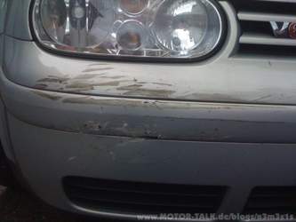 Tja, zum VWler gegangen. 1500€ Schaden diagnostiziert -> neue Frontschürze, neuer Scheinwerfer, einige Halterungen und noch der lustige Querträger hinter der Frontschürze **Kotz**