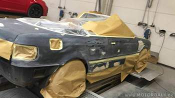Fertig. Welch komisches Wort. Jeder der ein Projektauto besitzt weiß, dass dieses Wort eigentlich nie auf das Auto zutreffen wird. Nungut, fangen wir an. Nach den bereits erfolgten Sattlerarbeiten stand nun der wohl größte Schritt an: Die Komplettlackierung. Darauf spare ich schon, seitdem ich das Auto habe und ich habe schon selbst nicht mehr dran geglaubt, dass das noch klappt. Nun soll es soweit sein, auch wenn die irre aufwändige Aufbereitung eine Woche vorher dann komplett umsonst war. Als vorletzter Schritt zum fertig.