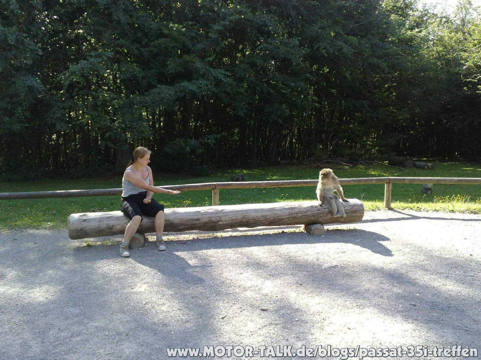 Am Sonntag haben wir dann noch einen kleinen Ausflug zum Affenberg gemacht... nach runden 50 km Fahrt bei zum Teil malerischem Ausblick auf den Bodensee sind wir dort angekommen wo wir hin wollten. Als Erstes sind uns haufenweise kreisende Störche aufgefallen... obwohl wir doch eigentlich zum Affenberg wollten. Dann wurde es aber allen klar... hier gibt es nicht nur Affen. Es war ein nettes Erlebniss, denn kurz nach dem Eingang hat man Popkorn bekommen um damit die Affen zu füttern. Die nehmen einem ganz zutraulich das Zeug aus der Hand und knabbern es mal so nebenbei weg.