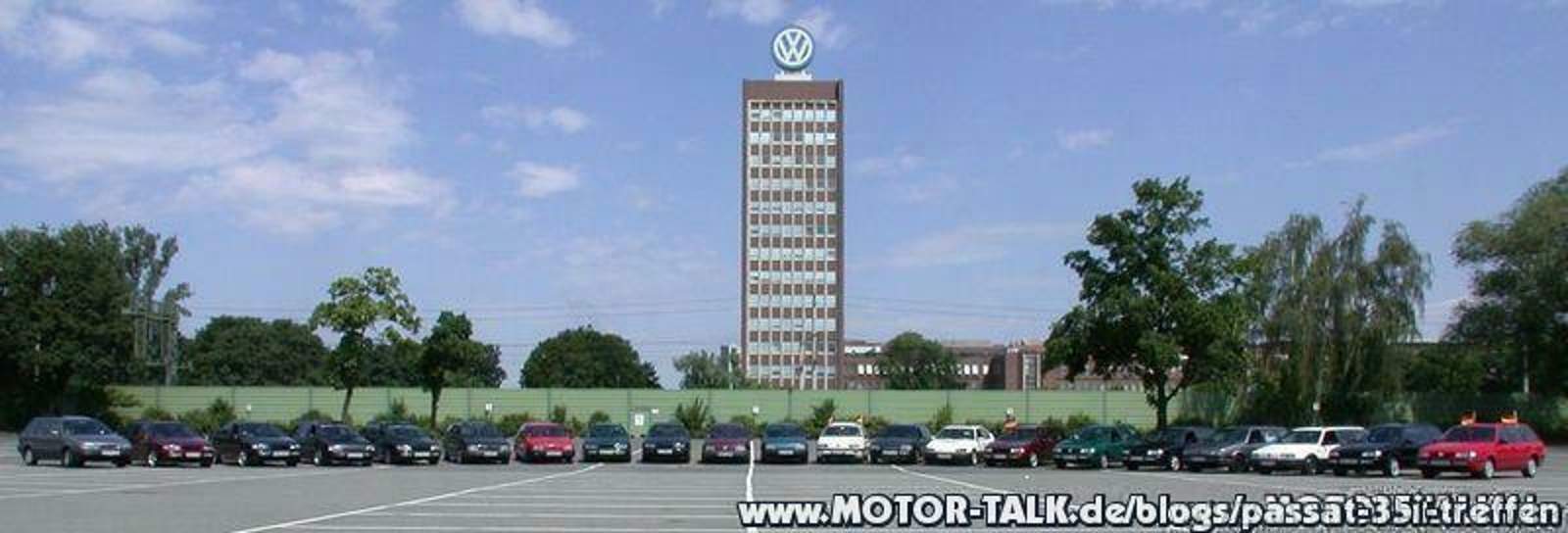Dann war es endlich soweit... das Wochenende und unser Treffen stand vor der Tür... was würde uns erwarten? Kommen wirklich alle angemeldeten Teilnehmer... wird es auch Ausfälle bei der Anreise geben... komme ich heil dort an, wo doch eins meiner vorderen Radlager den Geist aufgegeben hat... wie wird der Camping-Platz wirklich aussehen... wird genug Platz für alle da sein... hab ich auch nix vergessen? Da ich ja schon am Freitag angereist bin, um den Platz zu sondieren und alles persönlich mit dem Platzwart zu klären... und auch Jakker mit Frau schon Freitags kommen wollte... war ich dann doch guter Dinge. Auch drei andere haben es Zuhause wohl nicht mehr so recht ausgehalten... OK, die Strecke der Anreise war auch ganz schön weit... waren wir am Freitag Abend doch schon mir 5 Passi's auf dem Platz, welcher dann auch noch wesendlich größer war, als mit goole-earth zu erahnen. Jede Menge Platz für alle... und das auch noch ein wenig Abseits von anderen. Ich würde mal sagen... der ideale Platz für ein solches Treffen!!! Wir haben dann zusammen noch den Abend beim Grillen und kühlen Bierchen genossen. Am Samstag sind wir dann geschlossen zum eigentlichen Treffpunkt in Wolfsburg gefahren, wo schon sehr viele der anderen Teilnehmer gewartet haben... dieses hat uns dann doch sehr beruhigt, da wir nun wussten, daß es doch kein "kleines Treffen" wie in Berlin wird. Also hab ich schonmal die Namens-Kärtchen verteilt und Jakker hat Fotos gemacht. Nach und nach sind auch immer mehr Leute eingetroffen. Andere wiederum haben sich telefonisch bei uns gemeldet und angekündigt, daß sie sich etwas verspäten, weil sie im Stau gestanden haben. Jakker hat dann alle auf dem Parkplatz, unserem Treffpunkt, vor dem VW-Werk so positioniert, daß die Autos im Halbkreis vor dem Gebäude mit dem VW-Zeichen standen... Super FOTO... Das Foto... oder zumindestens so ähnlich haben wohl alle geschossen. Und dann tauchte da noch etwas auf was irgendwie gar nicht auf dem Plan stand... Wir fanden es ebenso lustig wir die beiden Insassen, nur mussten sie letztendlich doch einsehen, daß sie nicht wirklich dazugehörten... also zogen sie etwas geknickt wieder von dannen. Dafür tauchten dann doch noch zwei richtige Passi's auf... allen voran unser kleiner "Verrückter", der es sich wirklich nicht nehmen lies an unserem Treffen teilzunehmen... auch unter Schmerzen und nicht selber fahrend... aber dafür mit den 100 echten Thüringern eines anderen Users. Wir machten uns dann gemütlich auf den Weg zum Camping-Platz... nur wollten die Ampeln nicht ganz so wie wir und die Kolonne zog sich ein wenig... auf der Bahn haben wir sie dann wieder zusammen bekommen... bei 60 km/h und kurzem Zwischenstop auf dem Seitenstreifen. Einige machten dann auch noch einen kurzen Stop, um einzukaufen... und die anderen setzten ihren Weg zum Camping-Platz fort... wo auch schon unser Getriebe-GURU "Nordhesse" auf uns wartete. Also schnell die Autos anständig platziert... ein wenig ausgepackt und schon verschwanden die ersten Köpfe in den Motorräumen... dieses hat auch die ganze Zeit nicht wirkllich nachgelassen. Selbst unser ledierter "Verrückter" konnte nicht wiederstehen und musste an etlichen Autos rumschrauben, basteln, Steuergeräte auslesen, Tipps geben oder einfach nur schauen!!! Wie sich dann rausgestellt hat, hat das kompetente Kerlchen auch noch seinen Kumpel mitgebracht, welcher es nicht minder drauf hat... was zur Folge hatte, daß die Jungs auch noch ganz nebenbei die Nockenwelle des einen getauscht haben... trotz meiner Bedenken sogar ohne zu kleckern!!! Dann tauchte noch einer auf mit dem wir alle nicht gerechnet haben, denn eigentlich sollte er Zuhause bei seiner hoch schwangeren Frau sein... Auch der Abend war sehr angenehm... keine Streitigkeiten, jeder hat mit jedem reden können... es wurde zusammen gegrillt... andere sind baden gegangen... oder haben DVD geguckt... Spaß hatten wir wohl alle!!!