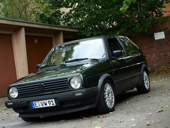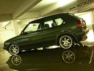 Gekauft haben wir den Golf...vor etwas über einem Jahr...der stand rum seit 2006 unbewegt, da haben wir ihn für paar € mitgenommen. Zustand war nicht so dolle, aber für das Geld..eigentlich wollten wir den gleich weiterverkaufen, aber da wir einige Teile günstig bekommen haben und er mit paar schöneren Rädern und der ein oder anderen Kleinigkeit gleich viel schöner war und der Motor sehr gut läuft, haben wir ihn erstmal behalten. Zum Glück! Heut ist er wieder fit. Das erste Bild, war halt der Zustand wie wir ihn gekauft hatten...das letzte ist von heute.