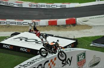 Nun standen die "Red Bull X-Fighter" auf dem Programmzettel. Durchgepeitschte Motocrosser in ihren fliegenden Kisten..... ähm auf ihren fliegenden Bikes.