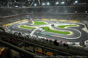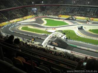 unweit von Frankfurt/Main machen sich 2 M-T User frisch gestärkt auf den Weg ins Rheinland, genauer gesagt in die Esprit-Arena zu Düsseldorf. Die knapp 270km nimmt man gerne in Kauf wenn Vettel, Schumacher, Loeb und Co auf einem "Carrera-Bahn mäßigen Racetrack" in PS starken Boliden ihre Runden drehen. Kaum angekommen auf dem Arena-Gelände wurde man von einem freundlich dreinblickenden Ordner um 5.-€ erleichtert.... aber die Parkgebühr nimmt man wohl gerne in Kauf, da der Parkplatz sehr zentral gelegen war. Die 5 Minuten Fussweg zum Austragungsort der "Gladiatoren der Neuzeit" ließen schlimmste Befürchtungen wach werden.... es ist ganz schön kalt. Seelisch und moralisch bereitete man sich auf einen Tag im Frost vor. Pfeifendeckel, in der überdachten Arena herrschten mittels Heizstrahlern hergestellte "mollige Wärme".