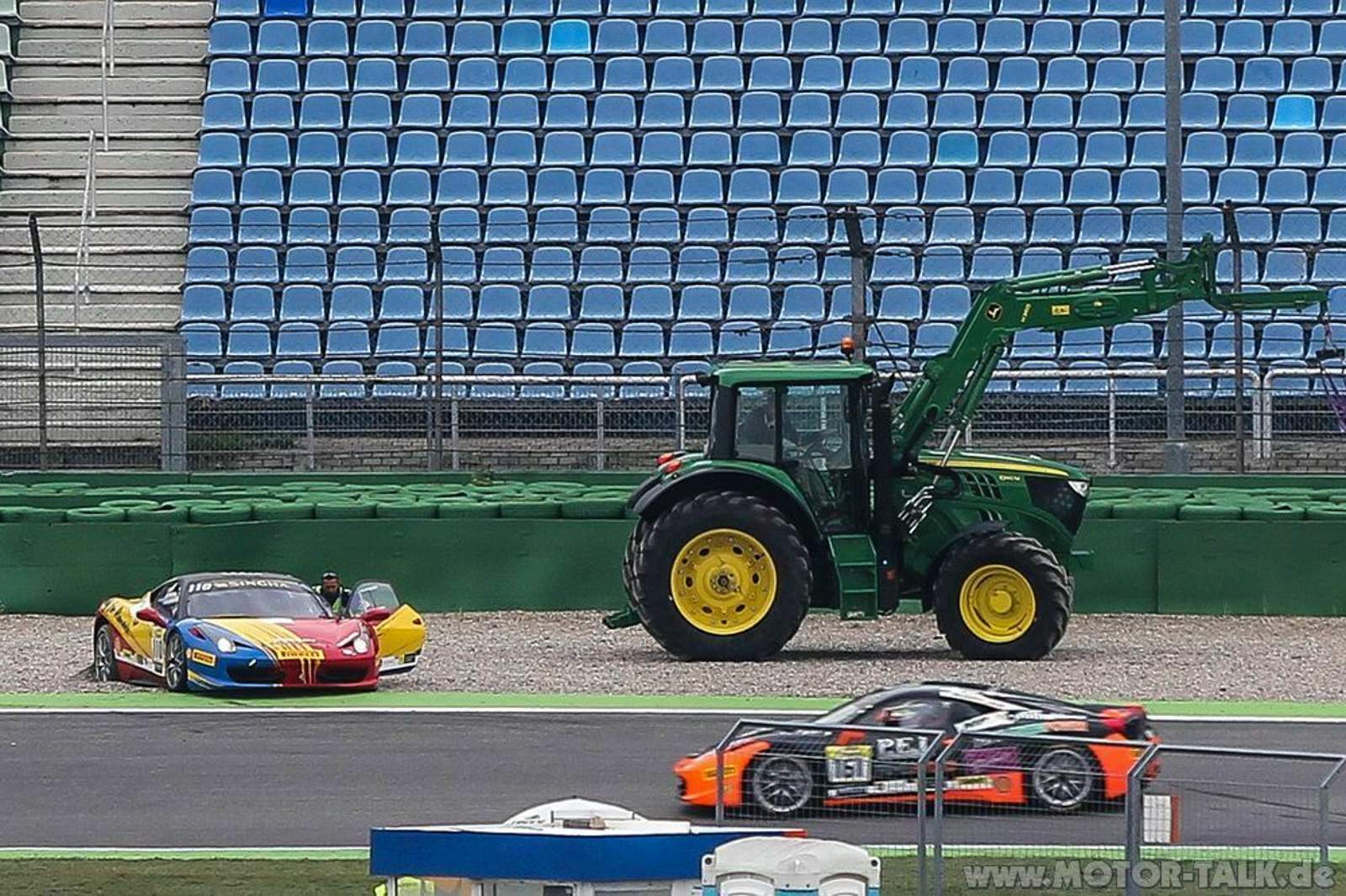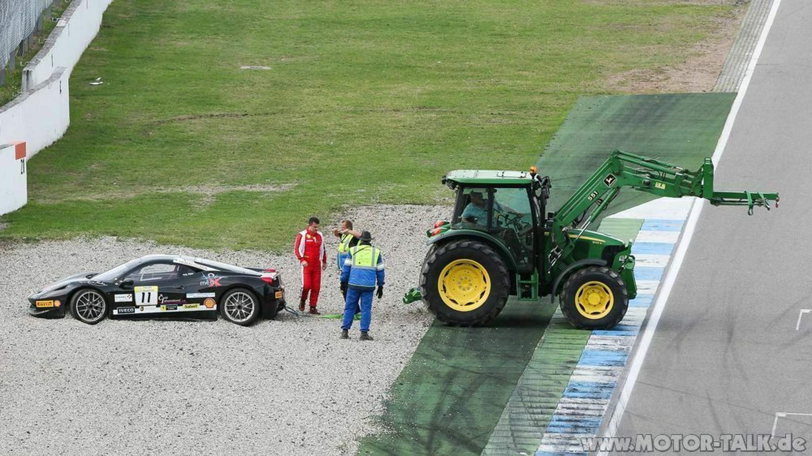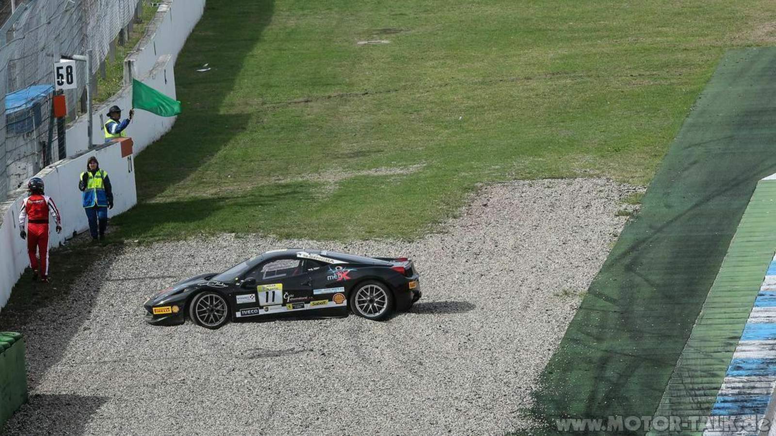 Qualifyings, Rennen am Samstag und Sonntag, zwischendurch immer die XX und F1 Clienti. Sehr abwechlungsreich und genau im Zeitplan, Respekt. Es gab jede Menge Race Action, zum Glück wenige glimpfliche Unfälle (Blechschäden und Frontflügelverlust) und beim Rennen am Sonntag schon in der ersten Kurve einen gewaltigen Crash von 3 Fahrzeugen, woraufhin mehr als das halbe Rennen (je 30 Minuten Länge) hinter dem 458 Italia Safety Car gefahren wurde.