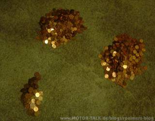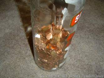 Um der Langweile zu entgehen habe ich mal die im Jahre 2010 gesammelten Münzen gezählt... Jetzt mal ein Tippspiel: Wie viel Euro steckten zum Zeitpunkt der Bilder in der Flasche drin?