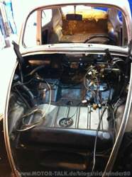 Im Innenraum soll, bis auf ein paar Zusatzinstrumente, alles bleiben wie es ist. Am Ende soll es ein Käfer in gutem Zustand mit zeitgenössischem Tuning werden. Jetzt hoffe ich, das wir bald mit dem Mini Cooper Projekt meines Mitstreiters weit genug sind, um mit dem Käfer beginnen zu können. Zwei Rohbauprojekte gleichzeitig machen einfach keinen Sinn, aber die Chancen stehen nicht schlecht das es bald losgeht.