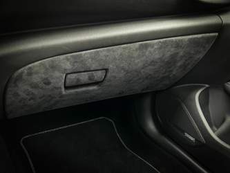 Der Handschuhfachdeckel und der Griff, wurden mit Alcantara versehen. Hier auch noch mal ein Detailfoto der Lenksäule und der Abdeckung des Sicherungskastens. |