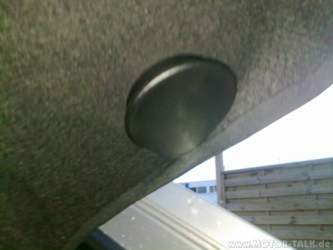 Als erstes mal wieder die Ablage aus dem Kofferraum rausnehmen Die Kappen sind geschlitzt und genau durch diesen zieht ihr die Schnur raus nun ist die Kappe vom Rest getrennt und ihr könnt die Schnur nach unten durch die Ablage ziehen.