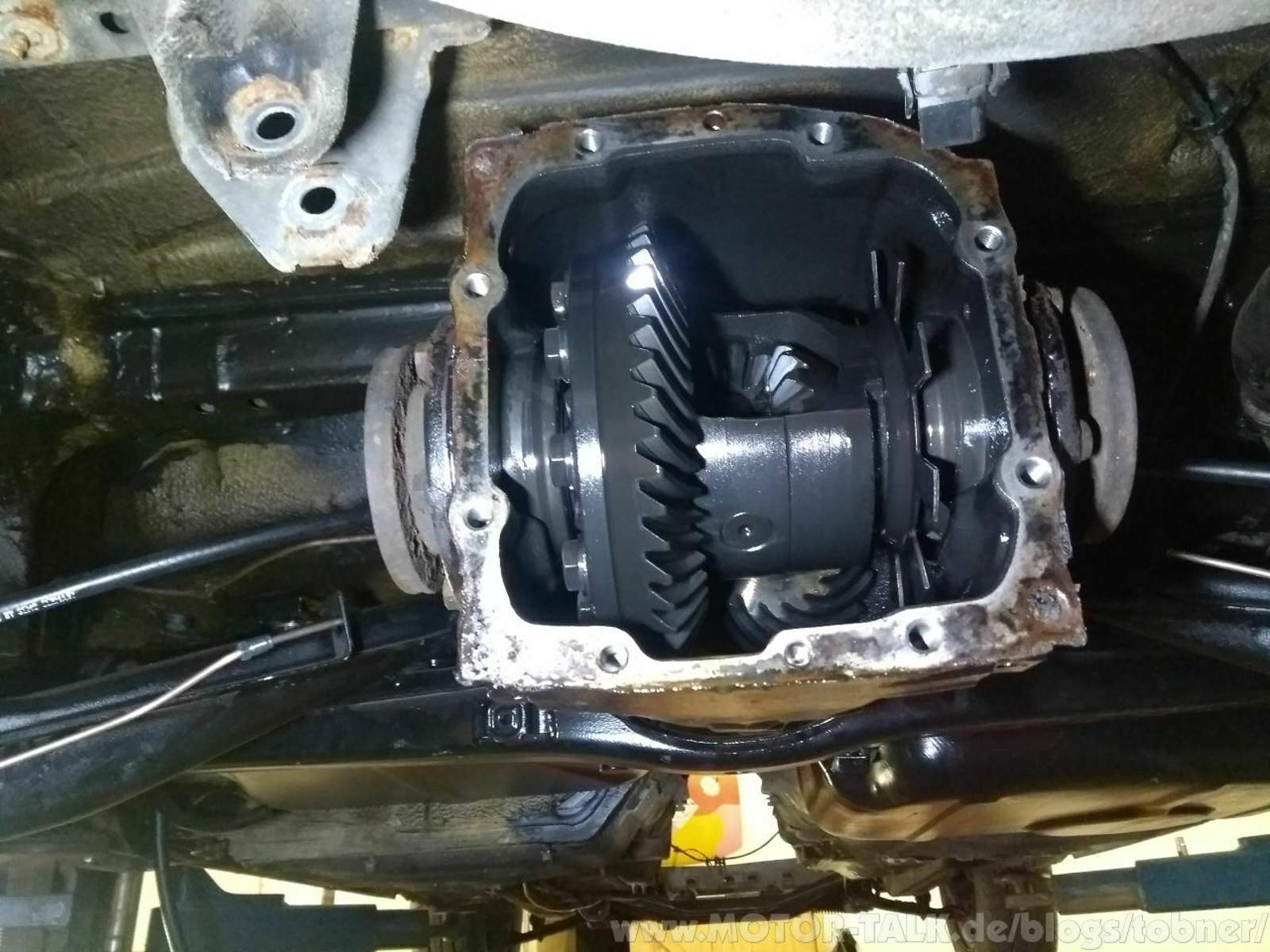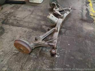 Damit war die Achse einbaufertig. Der Plan war simple: Alte Achse raus, neue rein und fertig. Sollte nur einen Tag dauern. Es wurden dann 2 Wochen daraus, in denen in jeden Tag am Auto arbeitete. Warum? Seht selbst: