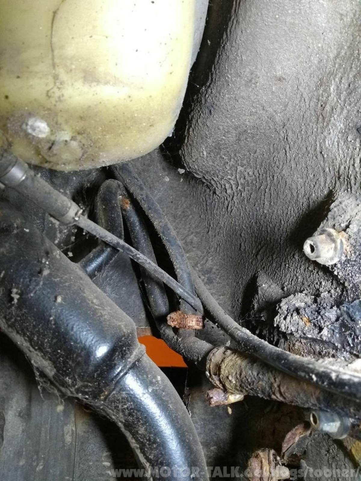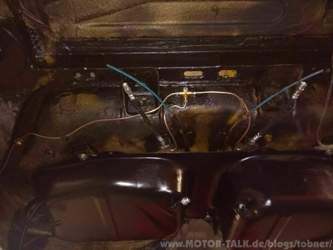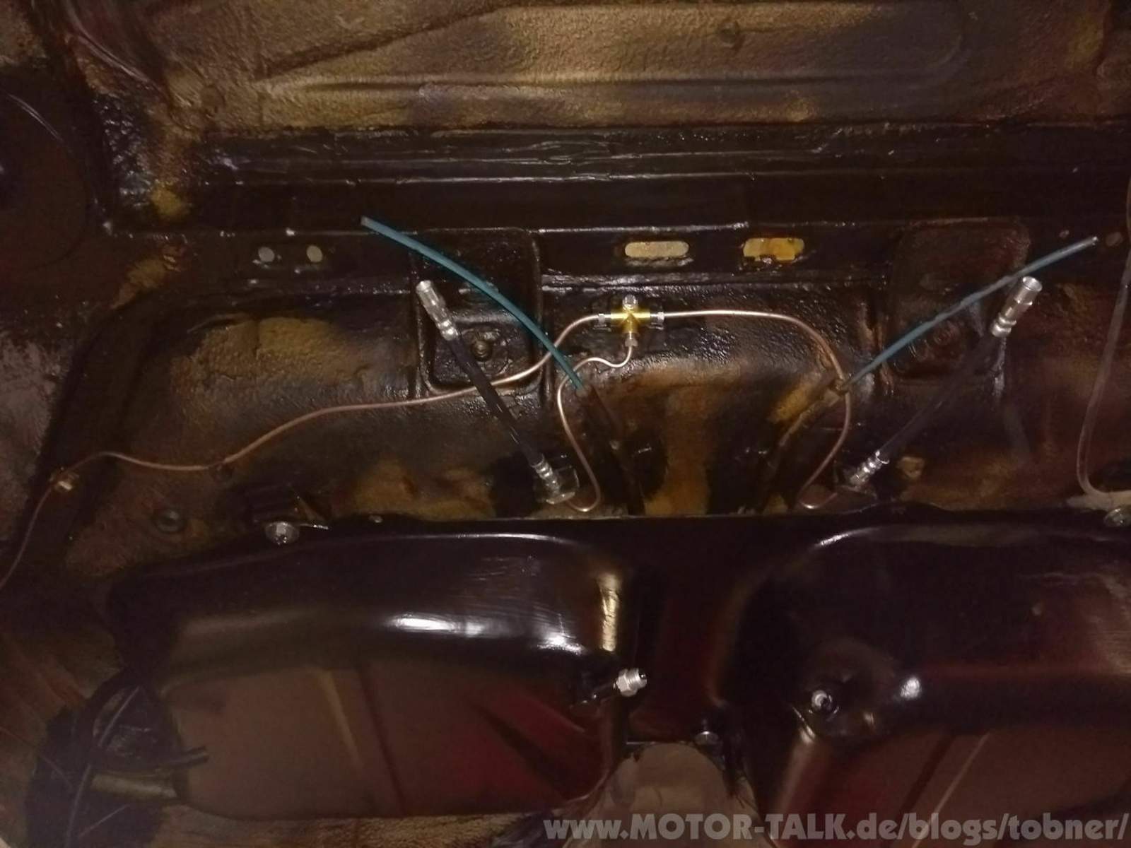 Dann baute ich neue Benzinleitungen ein, baute und bog die Bremsleitung vom HBZ durchs ganze Auto nach hinten (aus KuNiFer) und baute anschließend den Tank wieder ein.