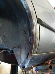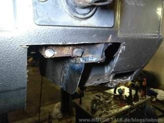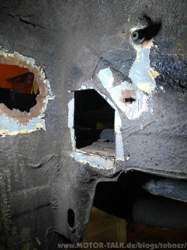 Als das alles wieder schick war und das Auto eh halbnackt auf der Bühne stand, kümmerte ich mich noch um die Hintere Kofferrraumecke/Heckblech um die Abschleppöse. Dazu habe ich die ganze Ecke herausgetrennt und neu gebaut.