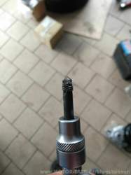 Die Bremssättel sind Originalteile aus 1988. Ich hab sie blank gemacht, neu lackiert, neue Manschetten (Kolben waren wie neu) und neue Führungsgummis verbaut. Dann passierte noch ein Malör: Ich habe eine Entlüfter abgerissen. Der Linksausdreher riss dann das im Loch verbliebene Gewindestück in 2 Hälften und ich konnte die oberen3-4mm herausdrehen. Das untere Stück mit dem Konus ging auch mit Linksausdreher nicht heraus, sodass ich als letzte Chance einen Torxbit hineingetrieben habe, den Sattel zum glühen gebracht und so das letzte Krümel herausgedreht habe. Glück gehabt...