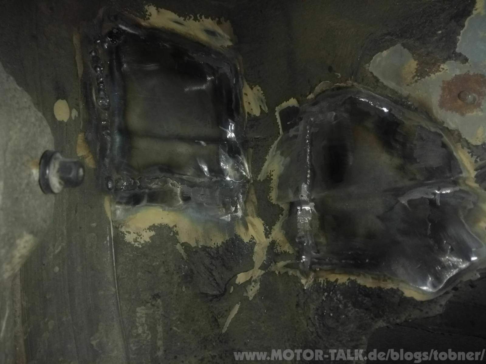 Ich möchte die arbeiten einmal machen, dafür richtig. Deshalb schliff ich die Roststellen blank, behandelte sie mit Kovermi-Rostumwandler, strich sie anschließend mit Brantho 3in1 und versiegelte sie anschließen mit hochwertigem Wachs vom Korrosionsschutzdepot. Das wird 100 Jahre halten!