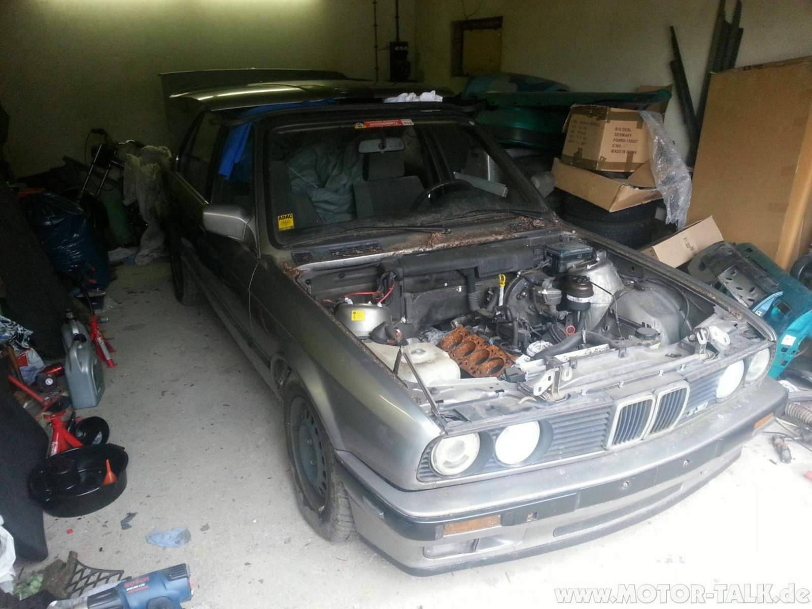 "Ich hab noch nen E30 stehen, den will keiner haben. Er ist rostfrei, hat aber nen Motorschaden. Auch wenn es schade ist, werde ich bald in die Presse schmeißen" Was? Rostfrei? E30? Schrott? NEEEIIIINNNNN!!! Ich fragte ihn, was er haben möchte. Den Schrottwert. Eine 3stellige, gerade so nicht 2stellige Zahl. "Nehm ich"