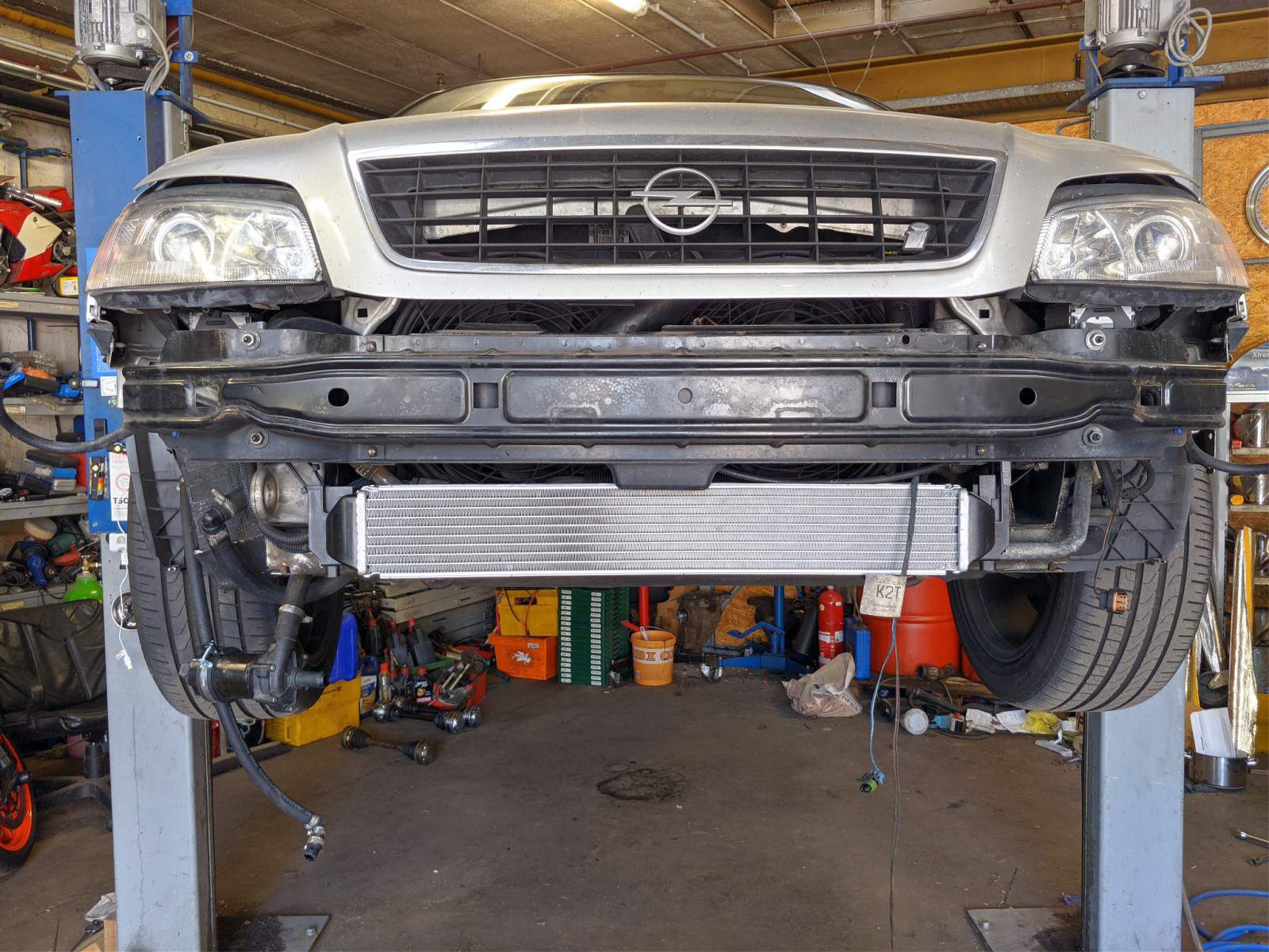 Zweiter Einbauversuch mit den V8-Wellen. Fahrerseitig waren die zu lang. Also wieder Rückbau.